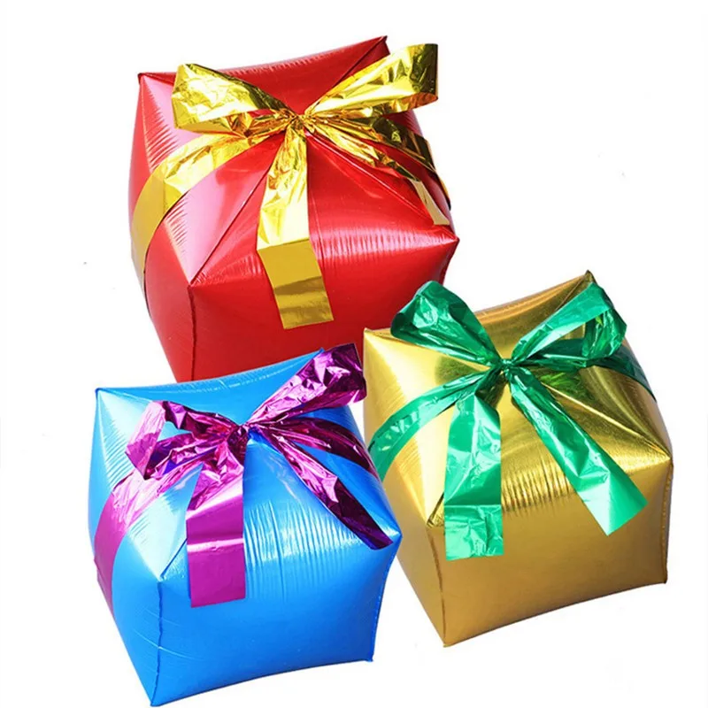 Подарочная коробка, кубические фольгированные шары, украшения для рождественской вечеринки, воздушные шары для свадьбы, воздушные шары, Классические игрушки надувные гелиевые шары