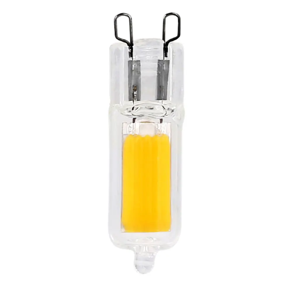 Светодиодный мини-лампочка COB: Технические характеристики: Основание Тип: G9 Мощность: 3 Вт, 5 Вт Регулировка яркости: без регулируемой яркостью освещения Замена: галогенная лампа 25 Вт/45 Вт Яркость: 200 лм, 300 лм Цветовая температура: теплый белый, холодный белый. Входное напряжение: 220 В Угол луча: 360 ° Материал: Стекло (Чип на плате) Срок службы: 20000 часов Ультратонкое естественное освещение CRI>80Ra Особенности: Экономит более 90% электроэнергии. Супер длительный службный срок службы до 20000 часов. Тщательно решить вашу проблему частого замены ламп. Международный стандарт G9 основание, подходит для всех G9 светильник. Экологически чистый, не содержит токсичных веществ, не содержит ртути, не содержит УФ-или инфракрасного излучения. Больше защиты ваших глаз. Область применения: Мебель светильник ing, офисный светильник ing, товары светильник ing, дисплей светильник ing, интерьер светильник и т. Д. Потолочный вентилятор светильник: вверх светильник s проектирует светильник на потолок, создавая атмосферу, Светильники улучшают видимость внутри комнаты, Люстра: используется в качестве декоративного фокуса для комнат. Посылка список: 10X мини COB светодиодный светильник