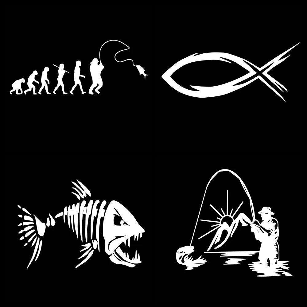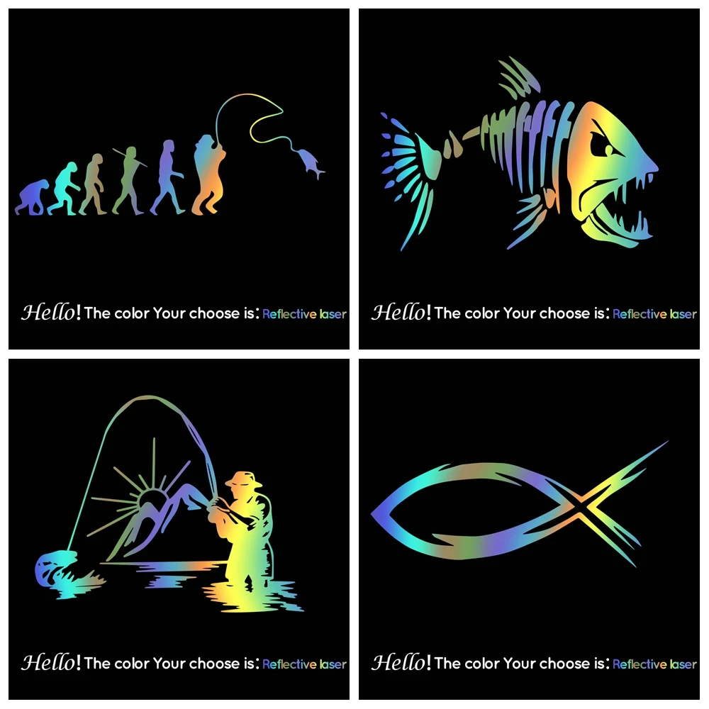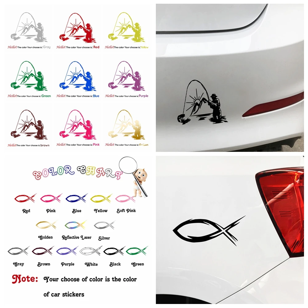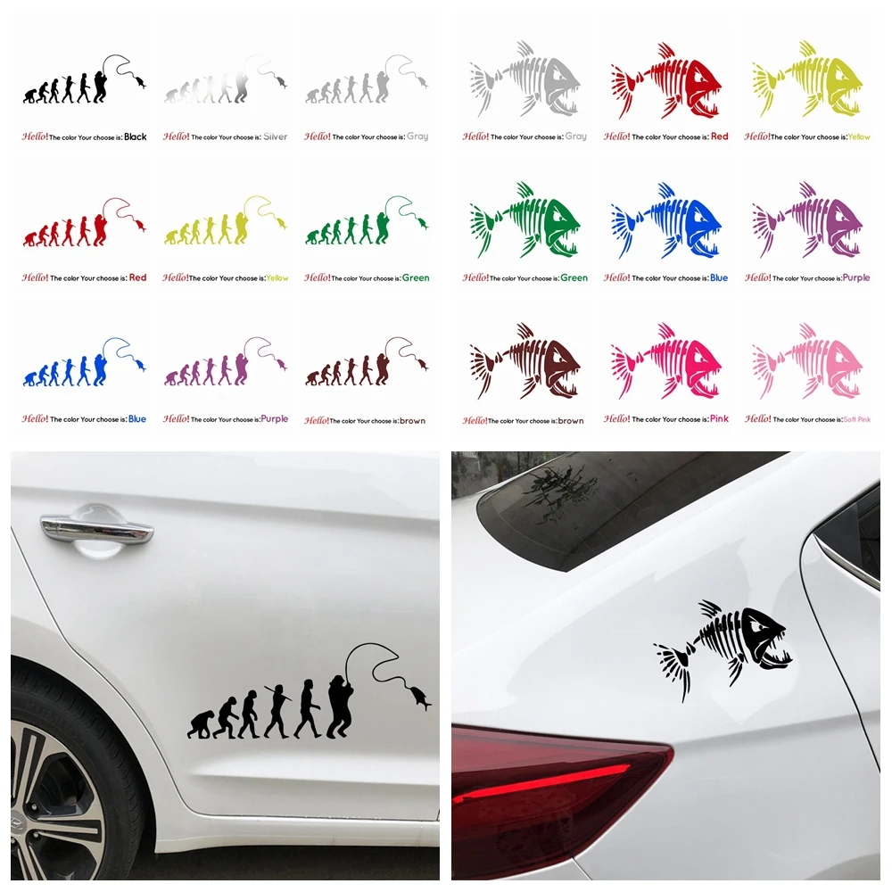 Бесплатная доставка, виниловые стикеры и наклейки в виде рыбы, забавные виниловые наклейки для зеркала заднего вида, крышки двигателя автомобиля Декор для окон