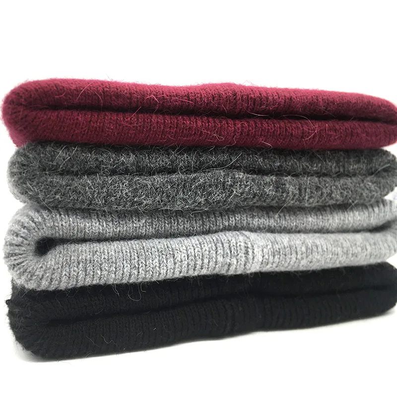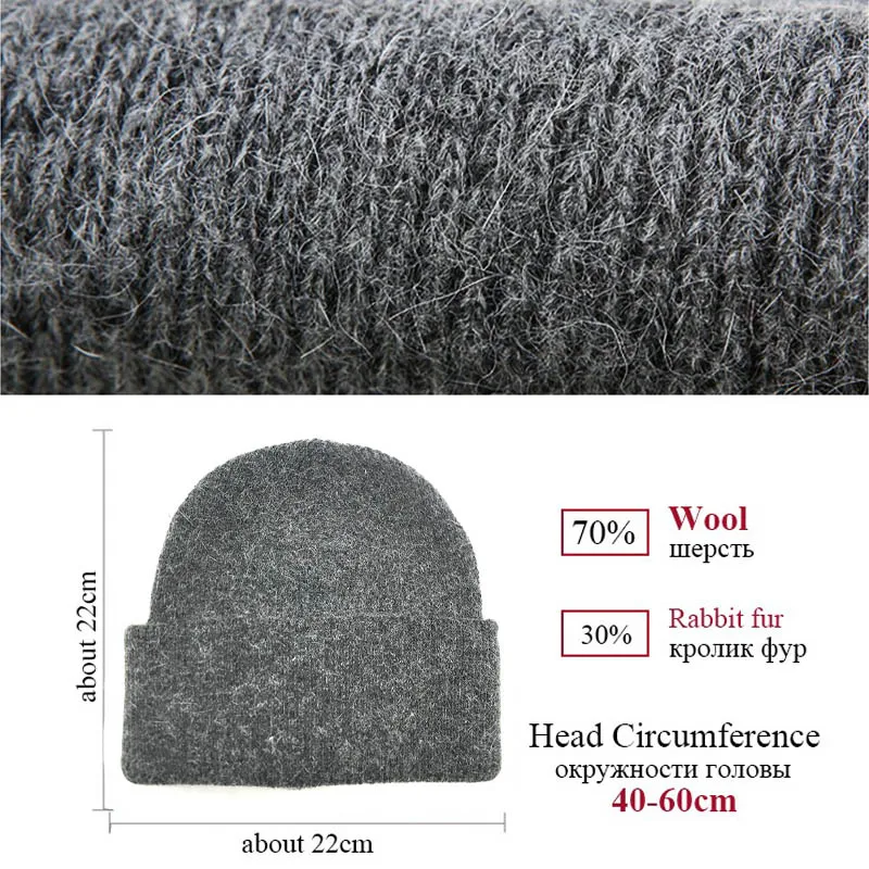 Мужская Шерстяная Вязаная Шапка-бини, зимняя теплая плотная стрейчевая шапка, Черная Мужская Шапка-бини, лыжная шапка, 2019
