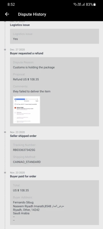 Мой заказ никогда не прибыл, и я не был возмещен за деньги