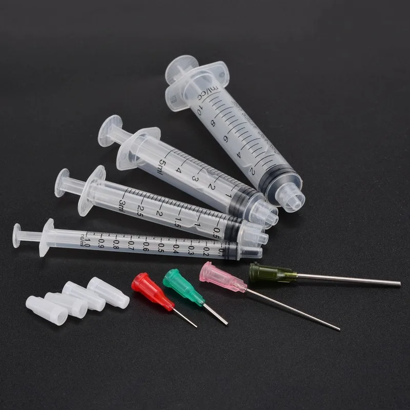 Шприц Дозирующий Luer Lock 100 шт.лот, 1 мл, 3 мл, 5 мл, 10 мл, с 100 шт. игл с тупым наконечником 14-25 г и колпачками для промышленного дозирования