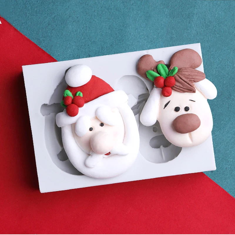 Силиконовая форма для украшения торта в виде рождественской елки, Санта Клауса, оленя, сахарный шоколадный форм, инструменты для выпечки