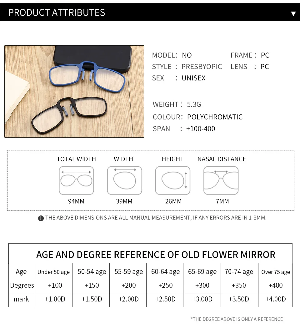 Пенсне для мужчин и женщин, стильный портативный тонкий Пинцет для носа, для чтения, без рук, для пожилых людей + 1,5 + 2,00 + 2,50