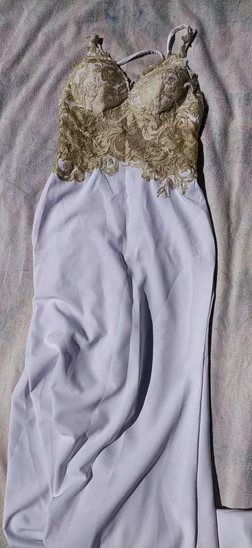 Платье очень похоже, но верх немного меняется, а тон золотой с блеском. Ткань нижней части платья выглядит хорошо. Хотя это немного меняется, мне очень понравилось. Очень медленная доставка более месяца в ожидании платья.