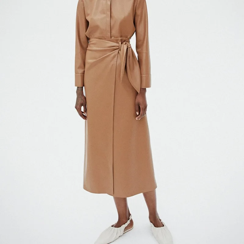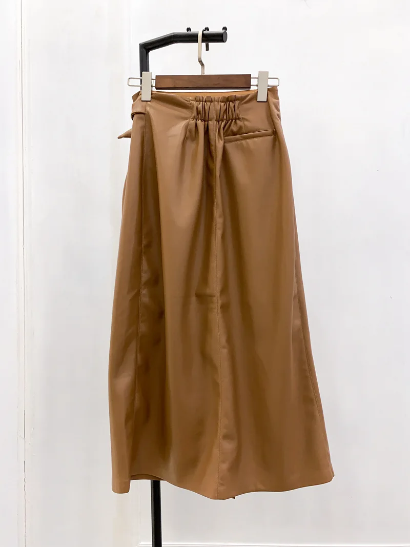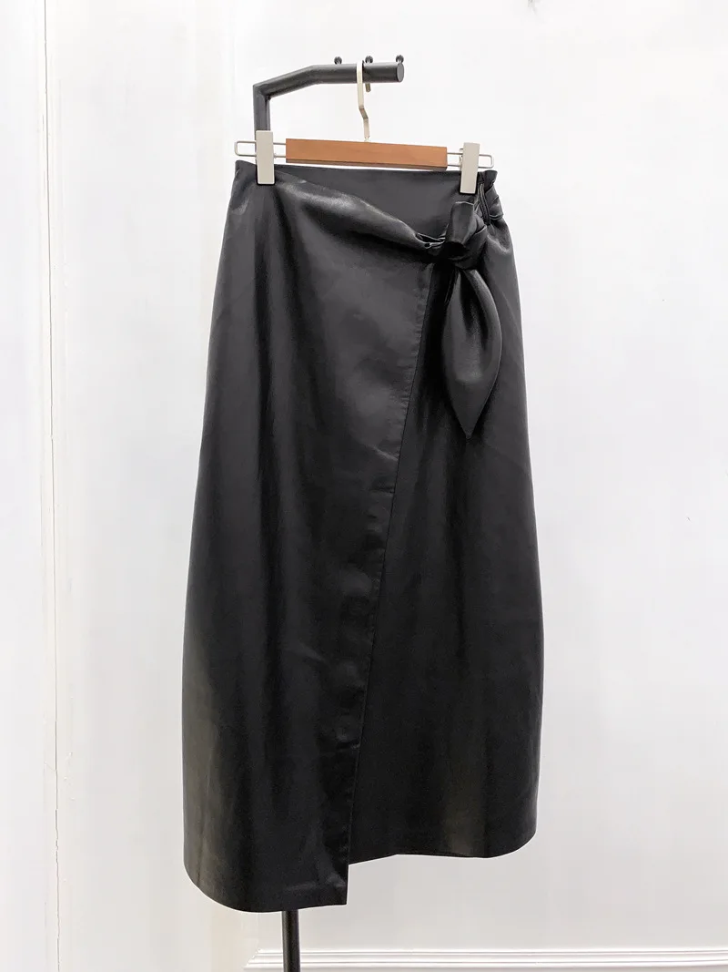 Женская длинная юбка из искусственной кожи, длинная юбка с завышенной талией, со шнуровкой кролика