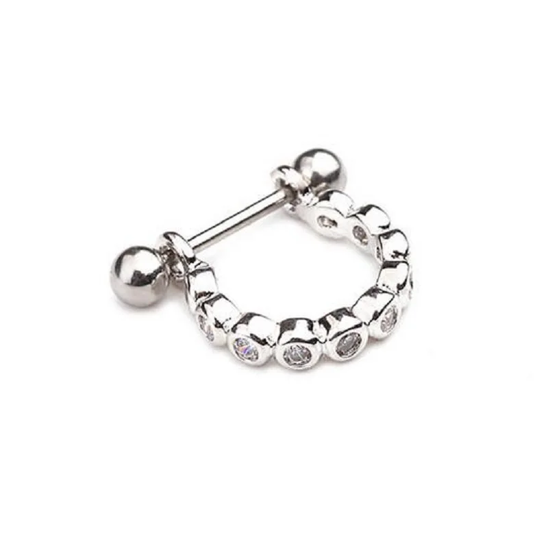 Хрящевая спираль, серьга-кольцо с фианитом, 1 шт., штанга нержавеющая сталь