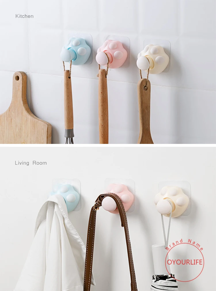 OYOREFD, симпатичная мультяшная кошачья лапа, креативный настенный крючок, самоклеющиеся скрытые крючки для висящий кошелек ключей, настенная вешалка, Декор