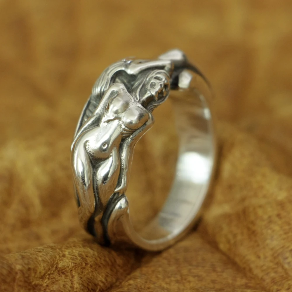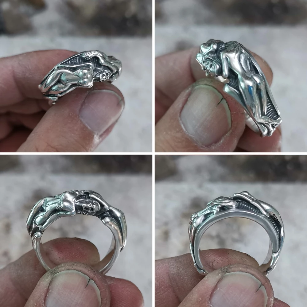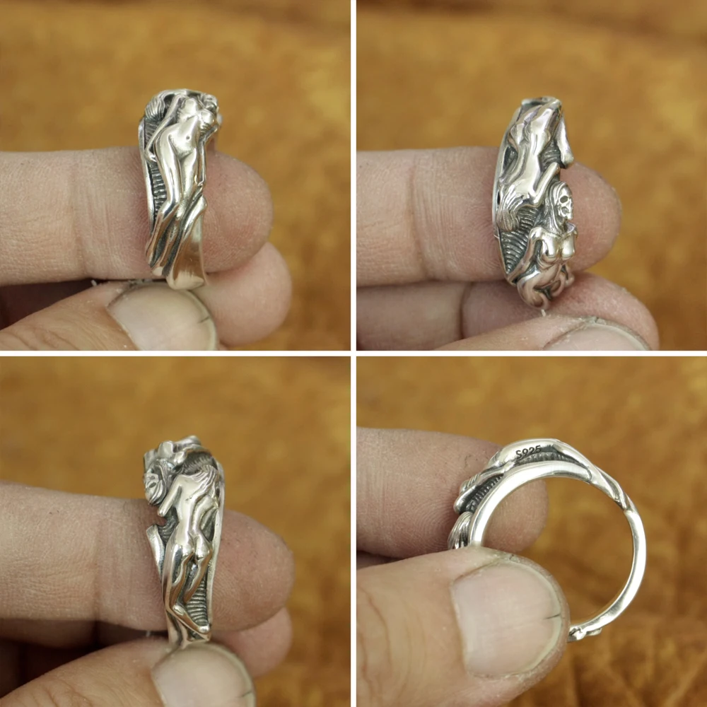 925 пробы Серебряное Сексуальное обнаженное кольцо с черепом, мужское байкерское кольцо TA185, размер США 7 15