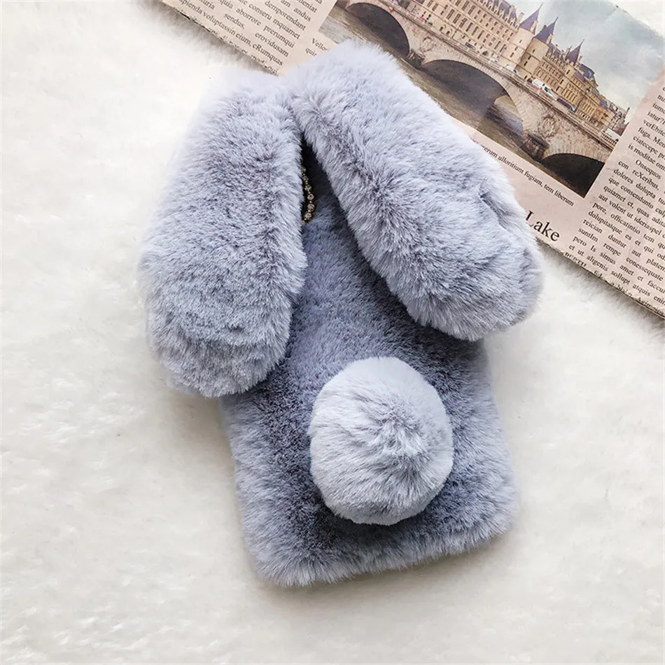Чехол для iPhone 13, 12 Mini, 11 Pro Max, XS Max, XR, X, SE 2020, 6S, 7, 8 Plus, с плюшевыми кроличьими ушками
