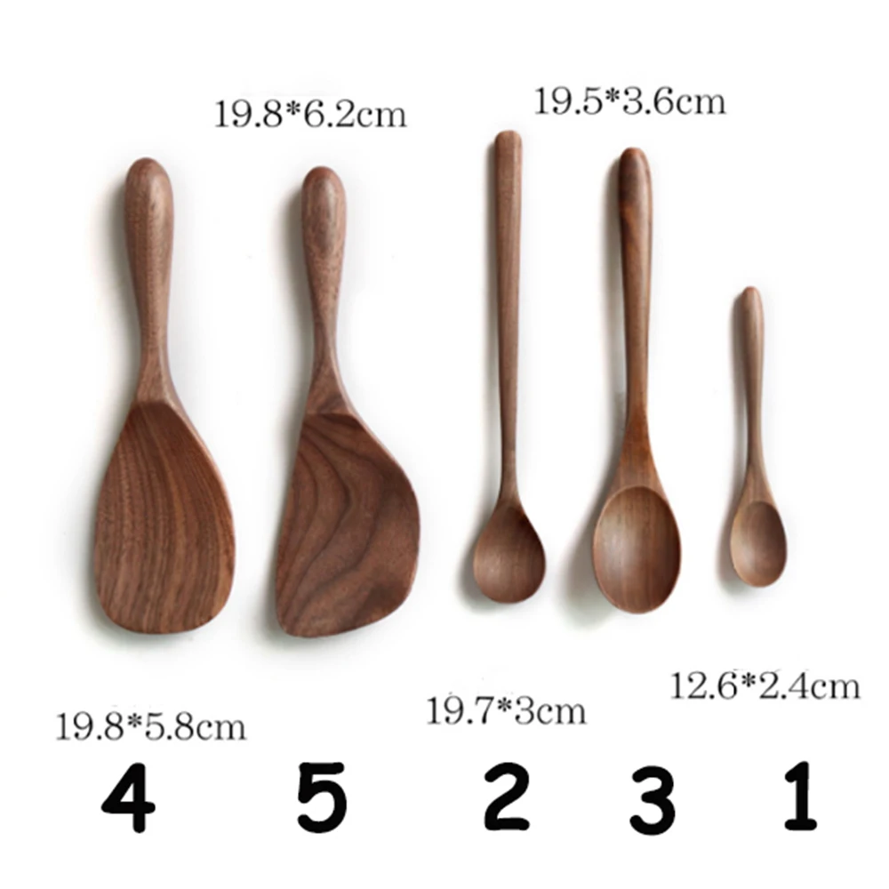 Деревянная ложка из черного ореха, столовая посуда в японском стиле, термостойкая длинная ручка, ложка для кофе, меда, ложка, кухонная посуда