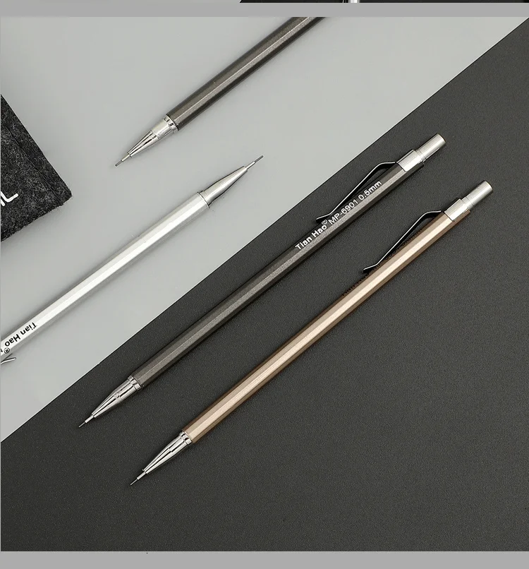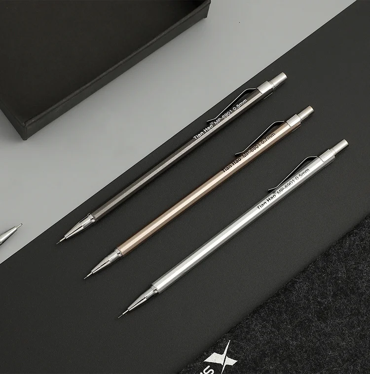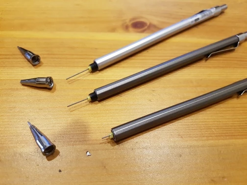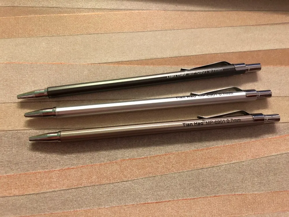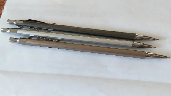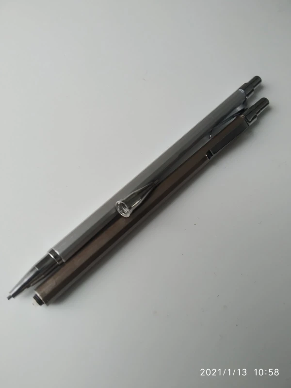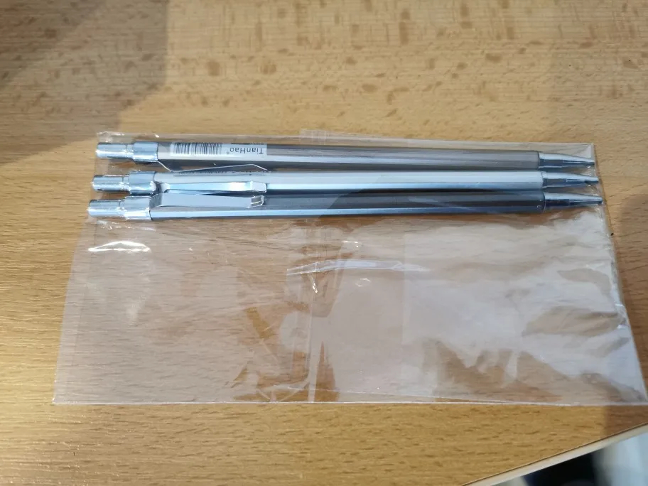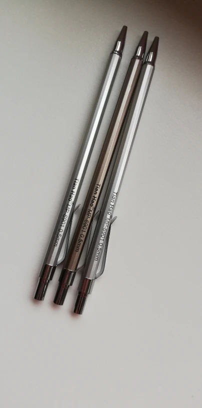 Шли около месяца, совместились с другими посылками, поэтому отслеживались. В карандашах предустановлены довольно твёрдые грифели. Сами карандаши из лёгкого и мягкого аллюминия, имеют пластиковые детали. Но они - именно то, что надо было мне.