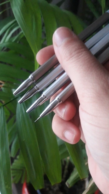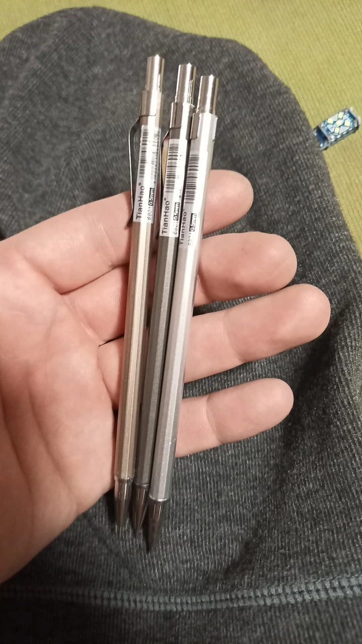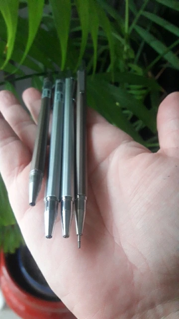 Карандаши прибыли через месяц, они стали намного легче, чем я ожидал. Они поставляются с проводами уже внутри, которые кажутся довольно жесткими, возможно, H3. На карандашах есть очень маленькие царапины и углубления, но они не очень заметны. Очень доволен покупкой, спасибо