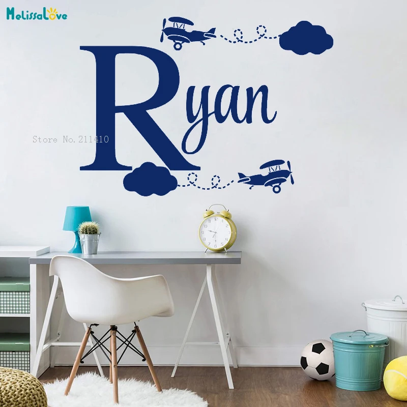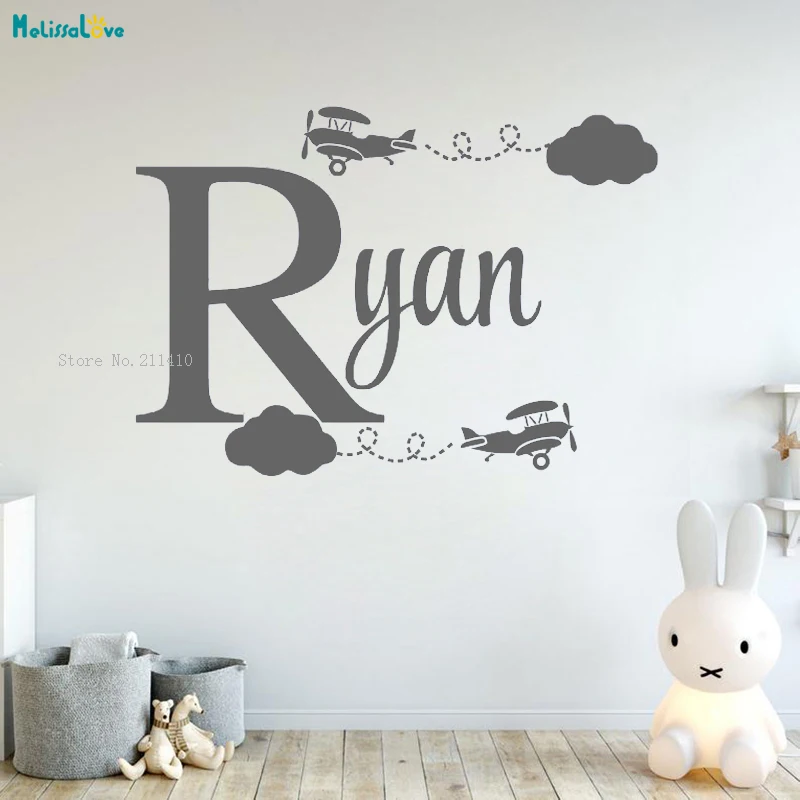 Наклейка на стену с именем самолета и облаком, изысканные наклейки для детской комнаты, милый виниловый постер для детской комнаты YT2791