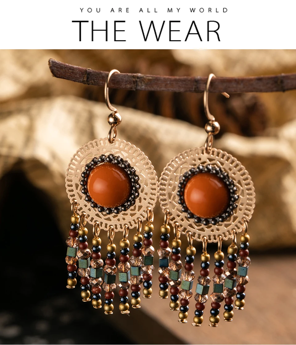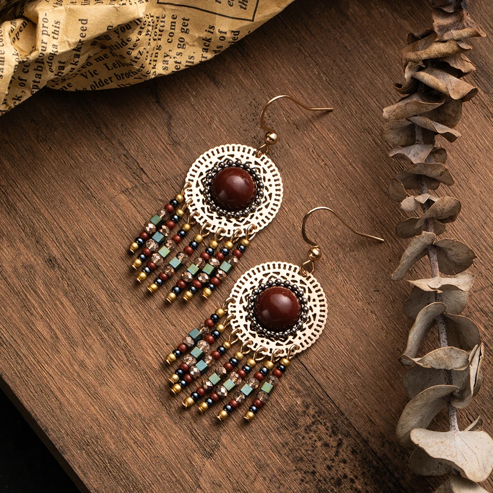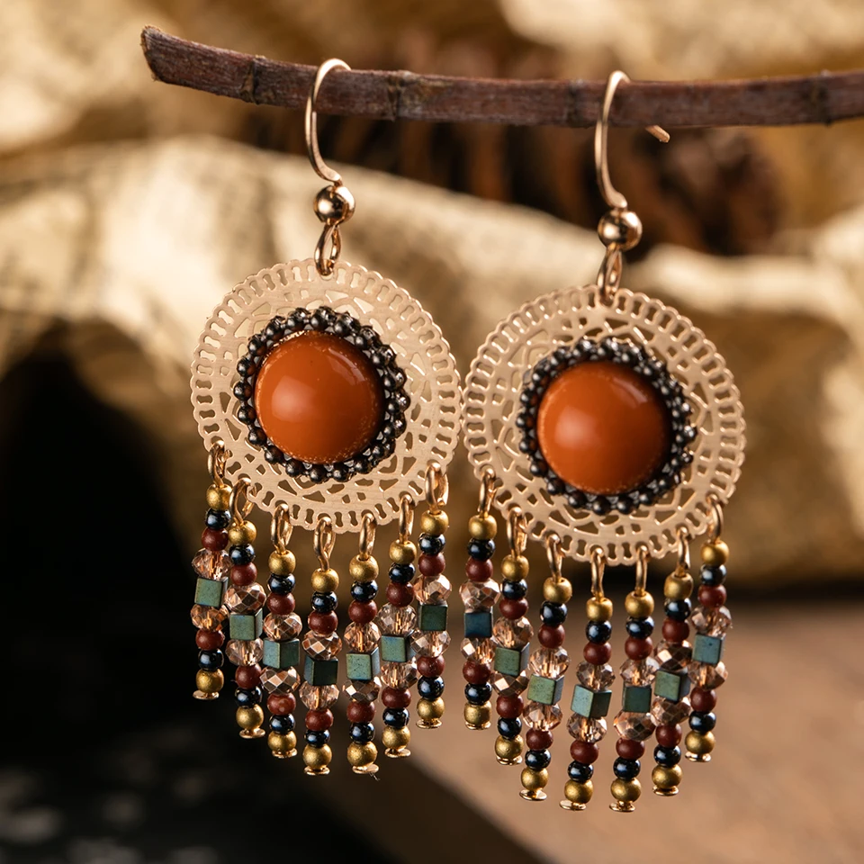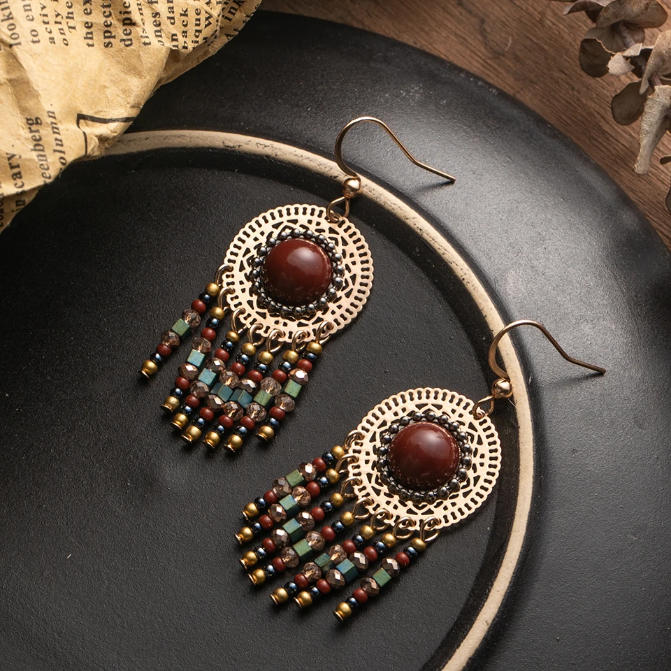 Богемные этнические каучуковые металлические Висячие Подвесные серьги в стиле бохо с кисточками для женщин женские Свадебные украшения Аксессуары