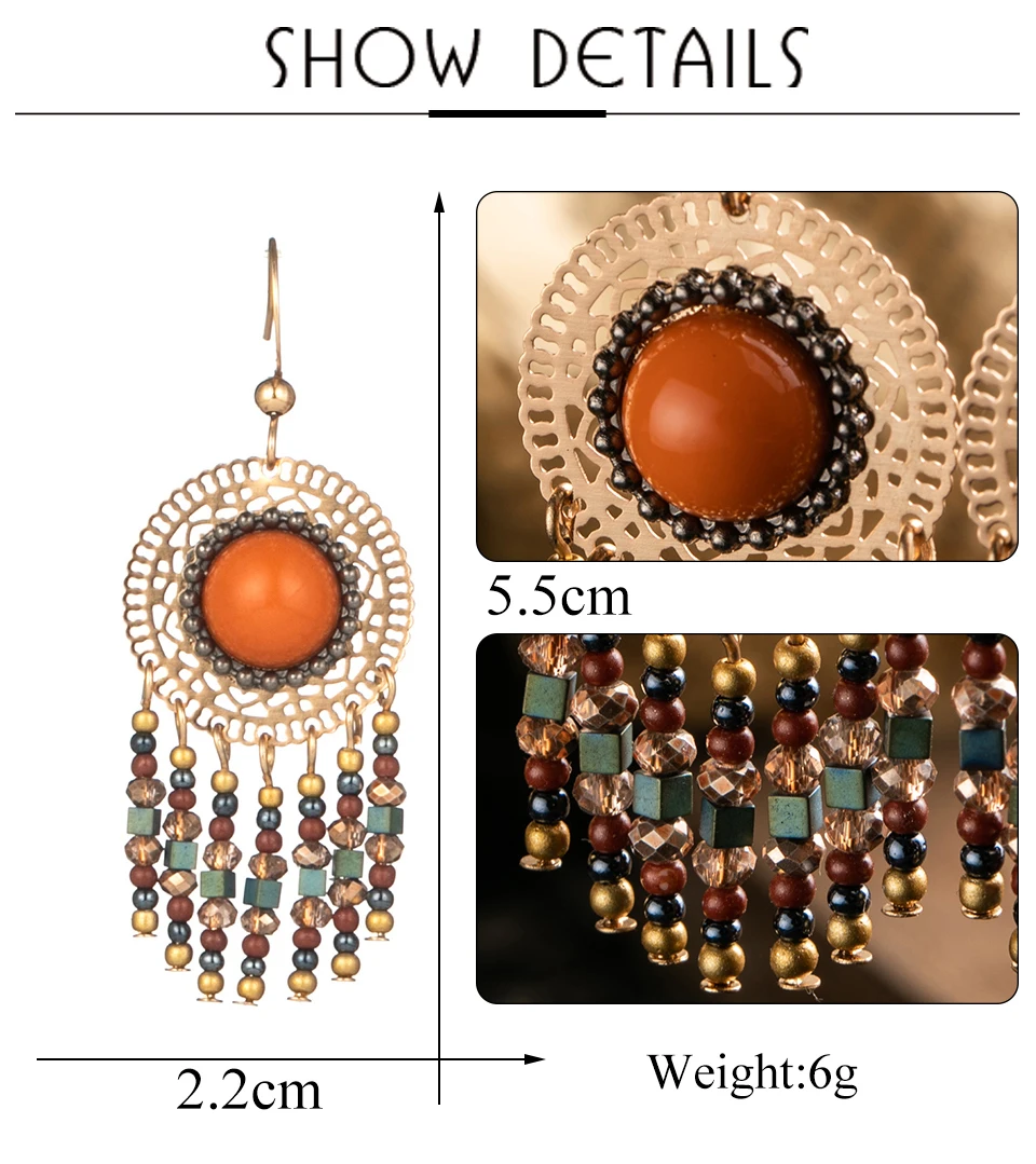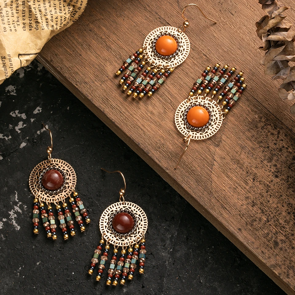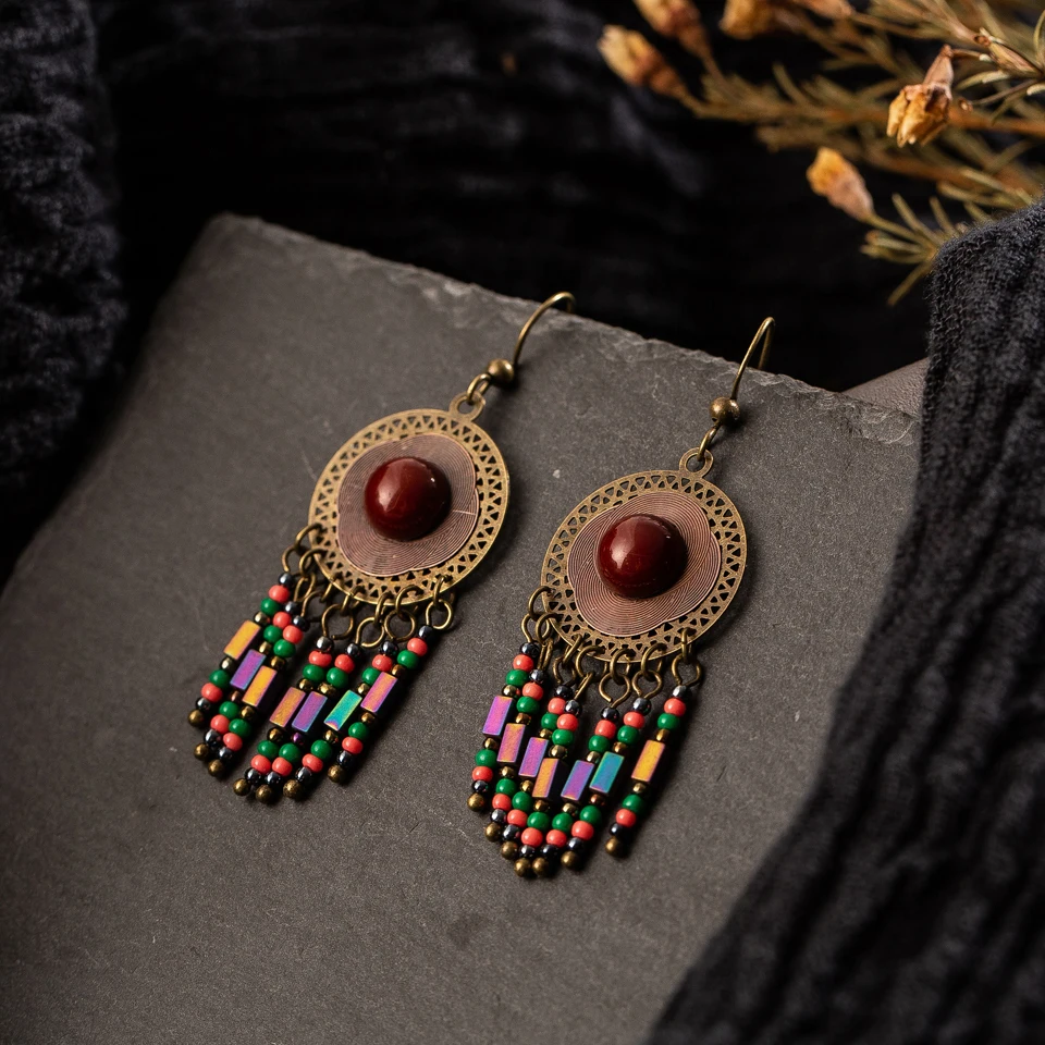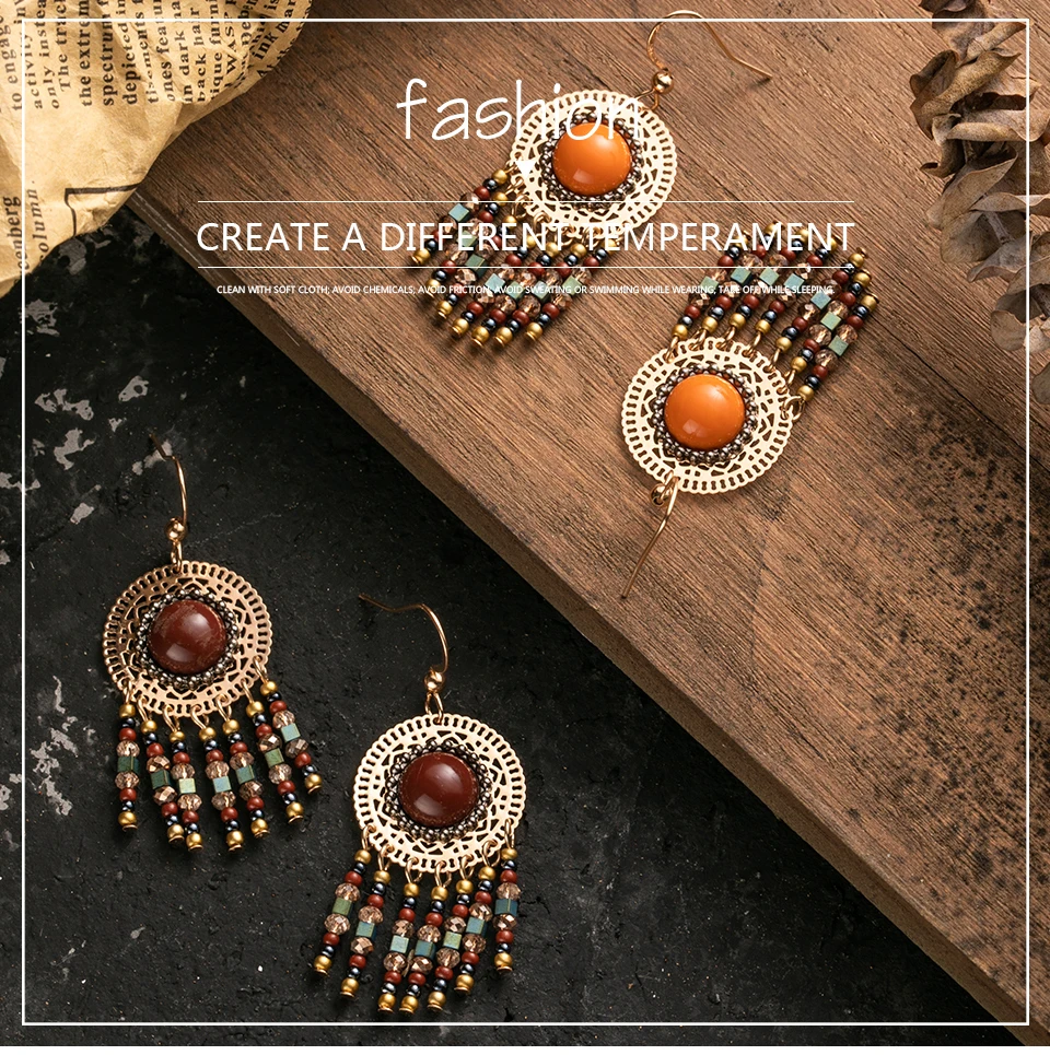 Богемные этнические каучуковые металлические Висячие Подвесные серьги в стиле бохо с кисточками для женщин женские Свадебные украшения Аксессуары