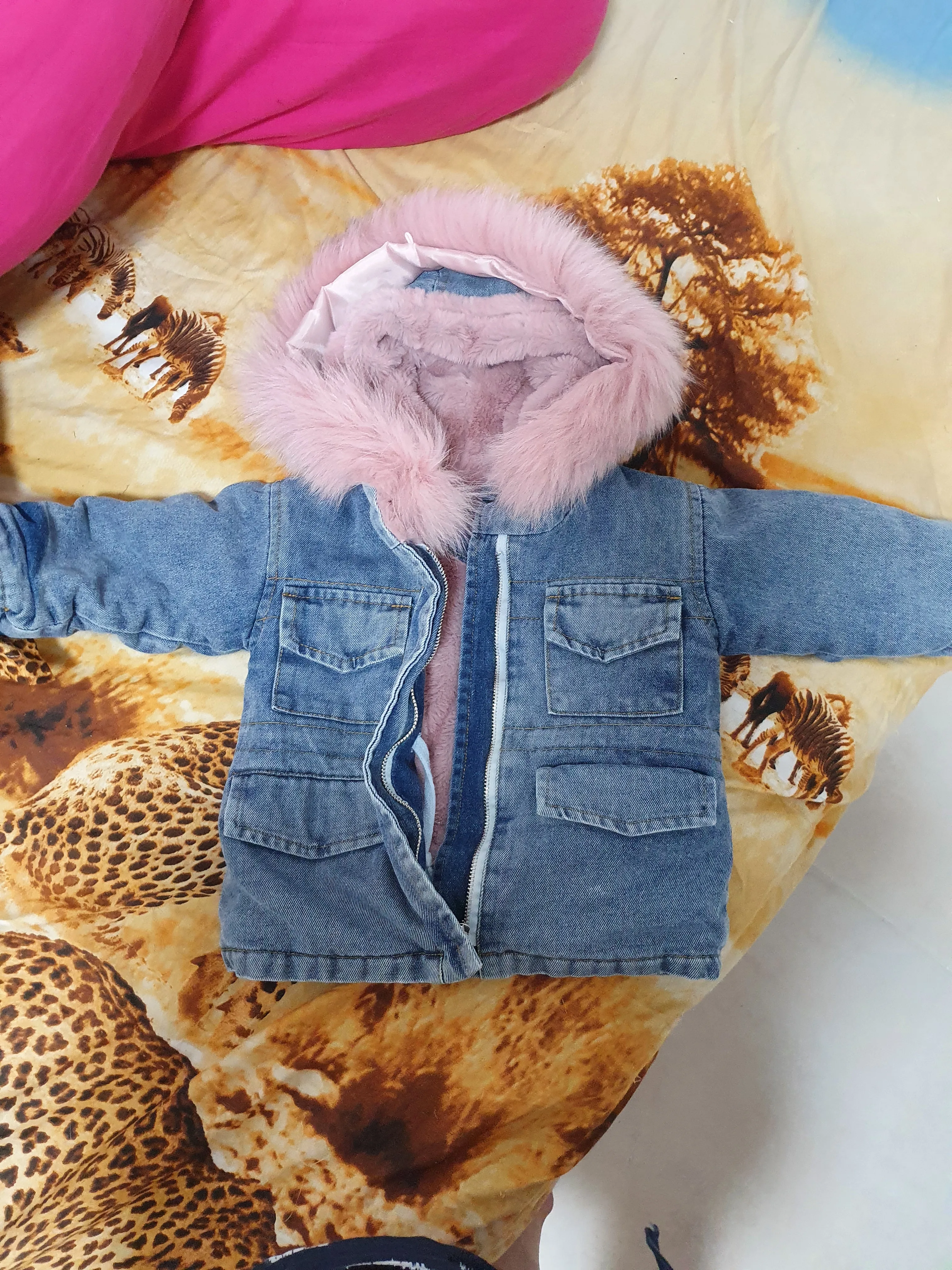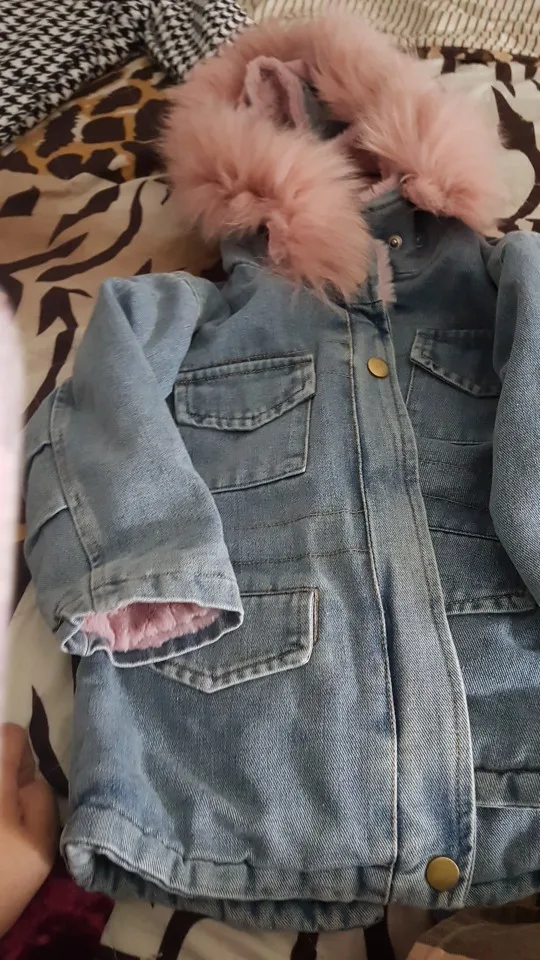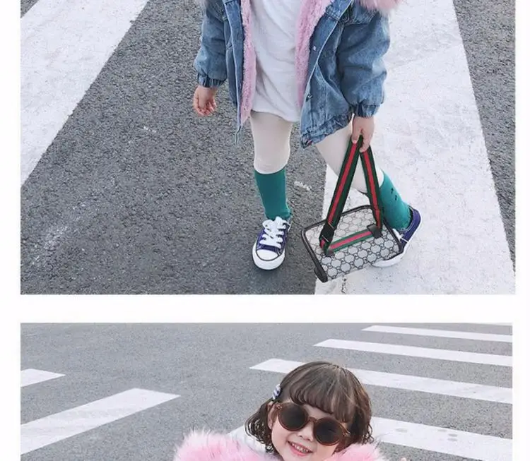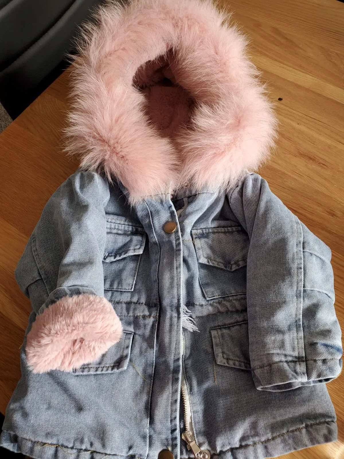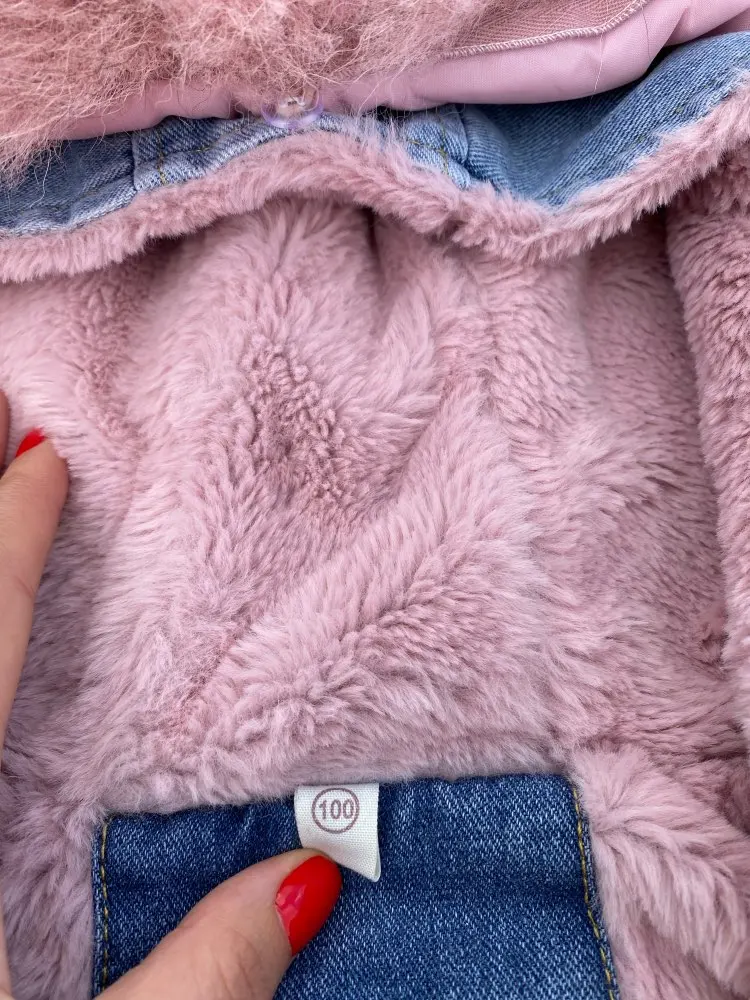 Зимняя джинсовая куртка для маленьких девочек с мехом, теплая верхняя одежда для маленьких девочек, плюшевая джинсовая куртка, хлопчатобумажная детская парка для младенцев