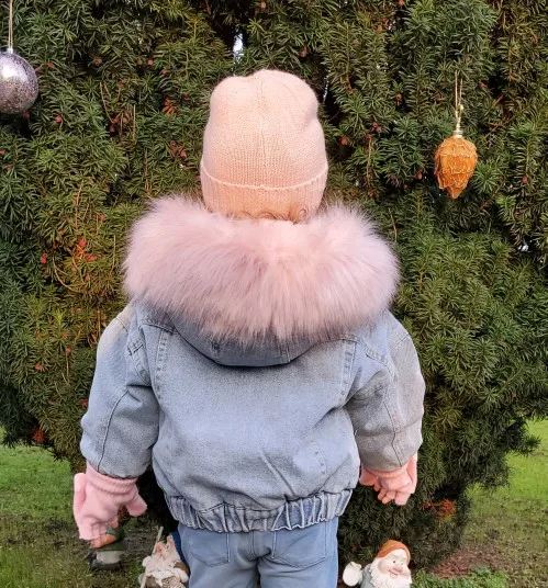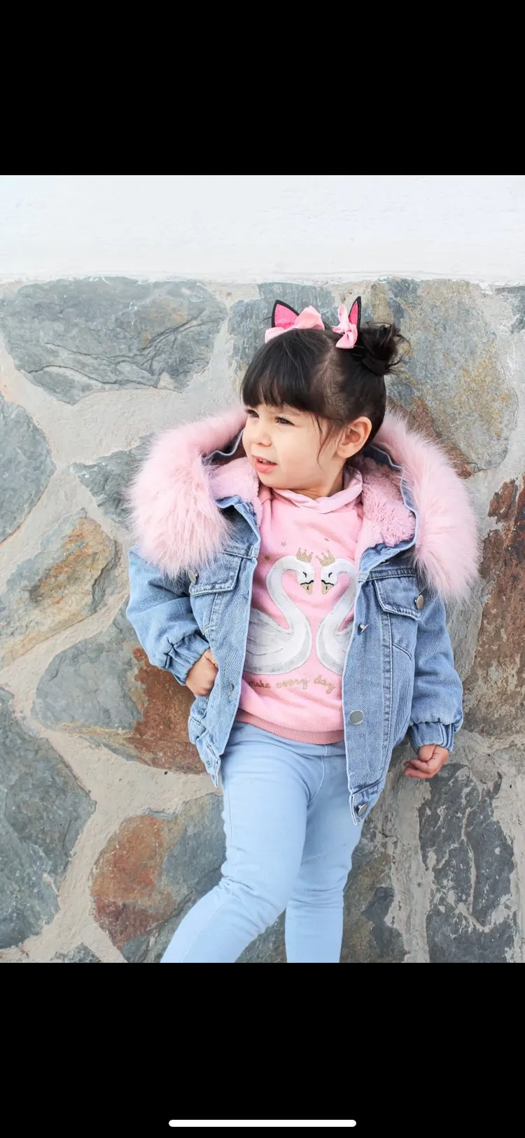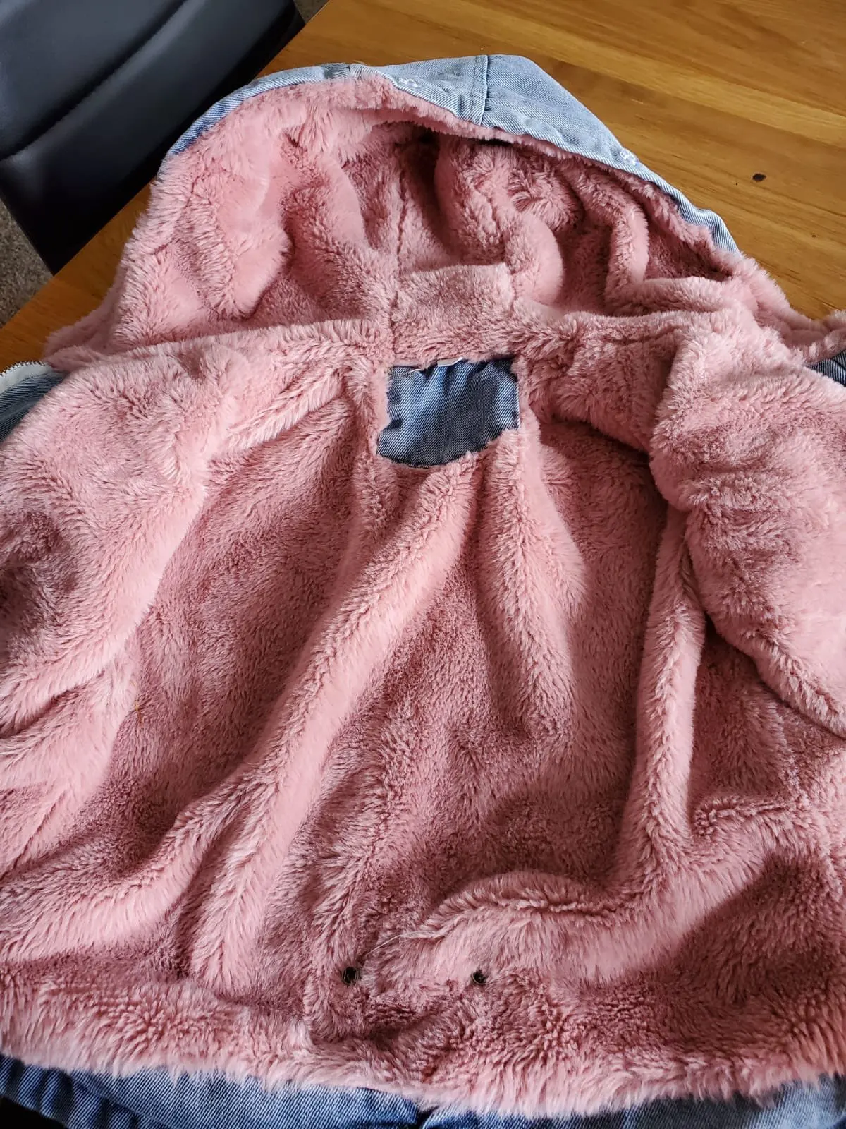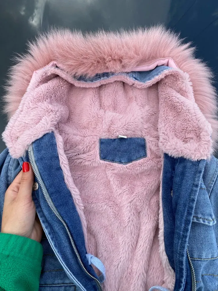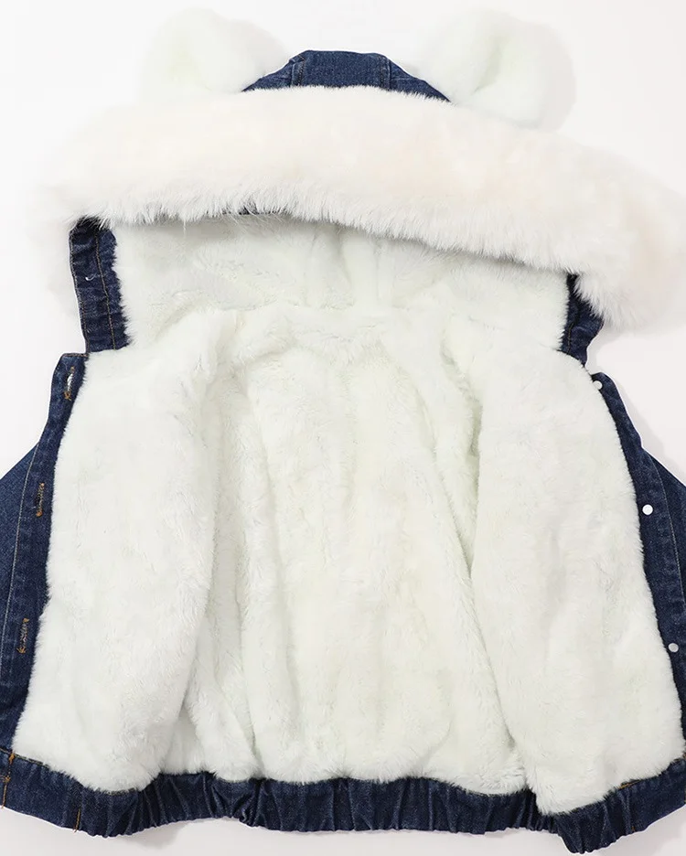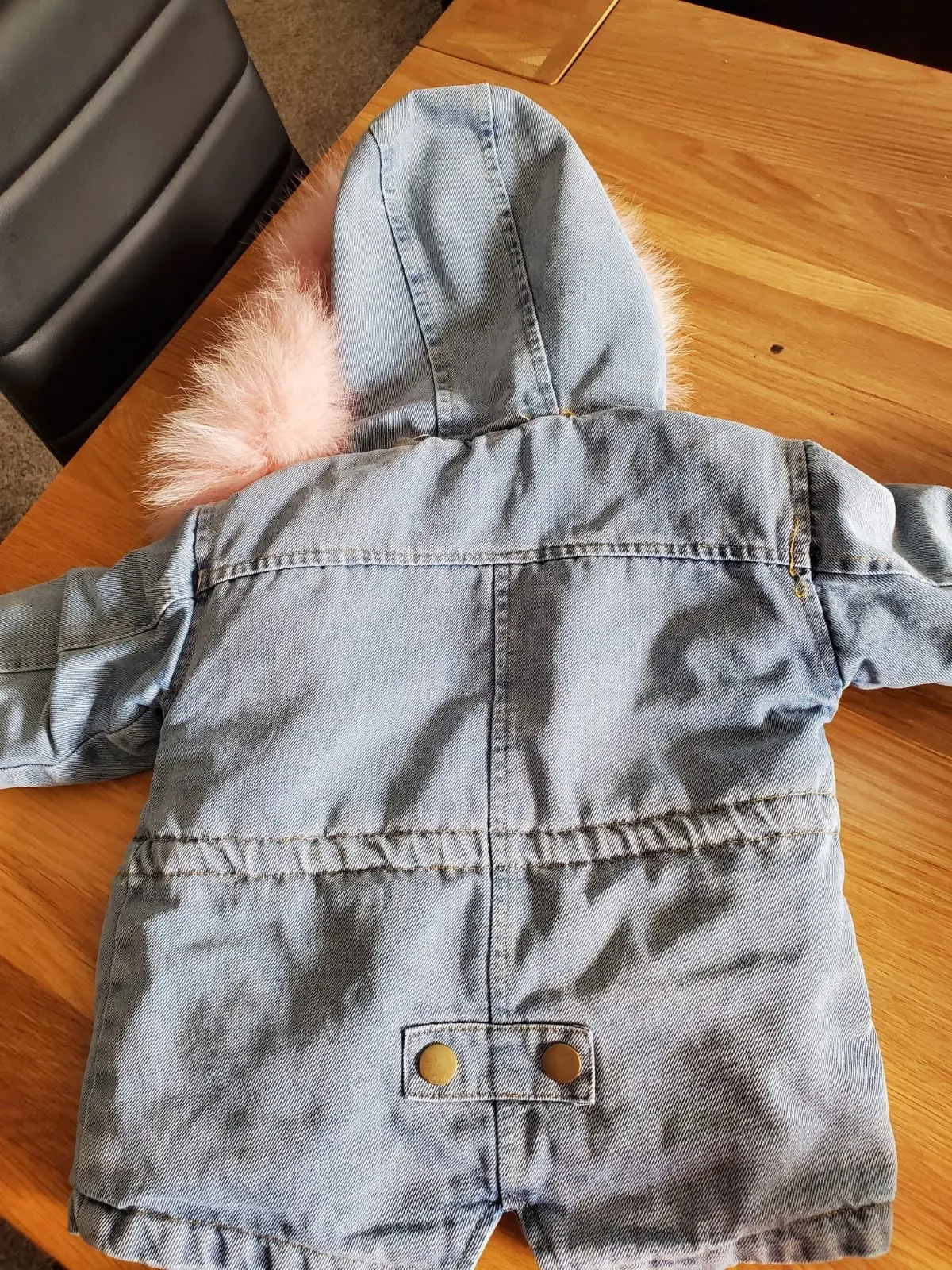 Зимняя джинсовая куртка для маленьких девочек с мехом, теплая верхняя одежда для маленьких девочек, плюшевая джинсовая куртка, хлопчатобумажная детская парка для младенцев