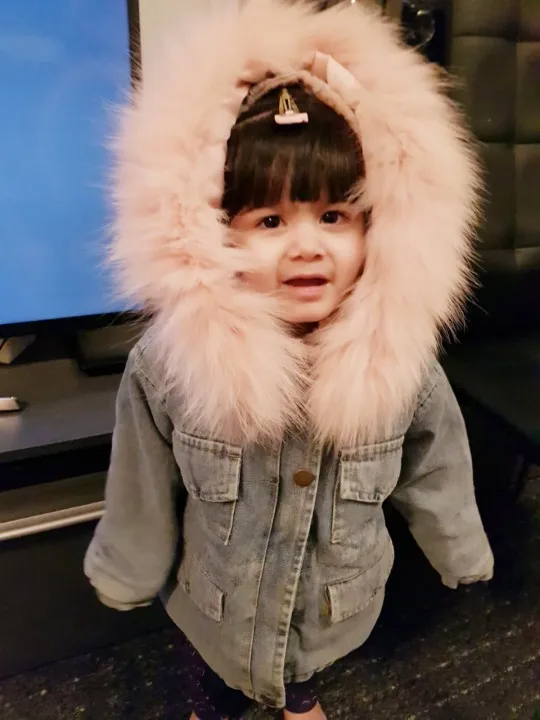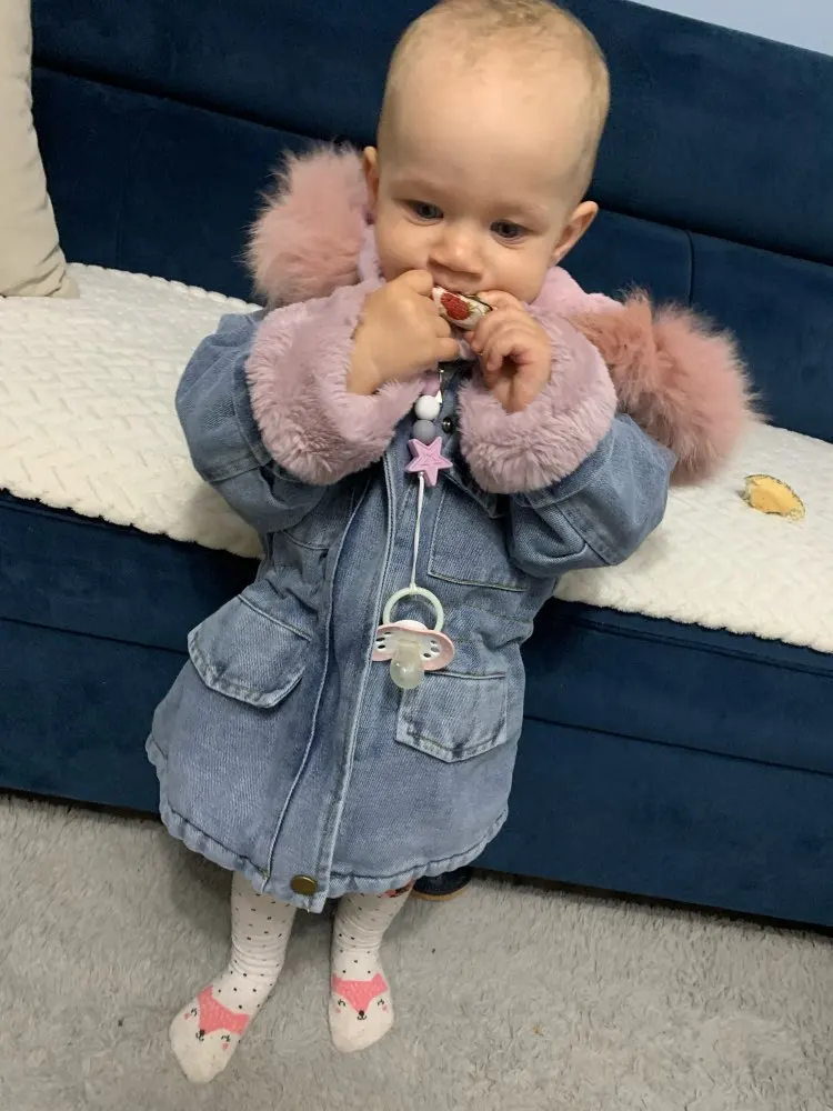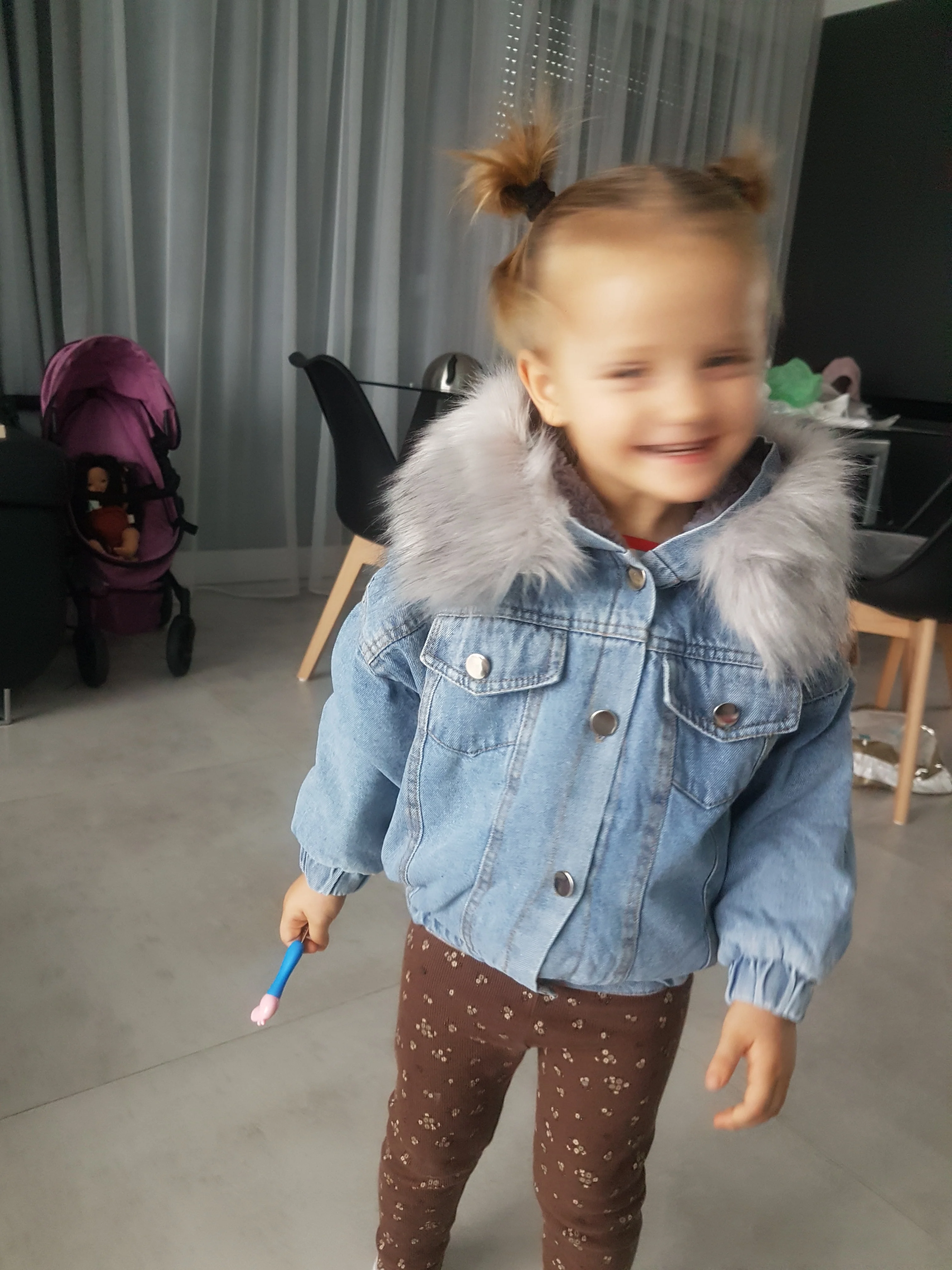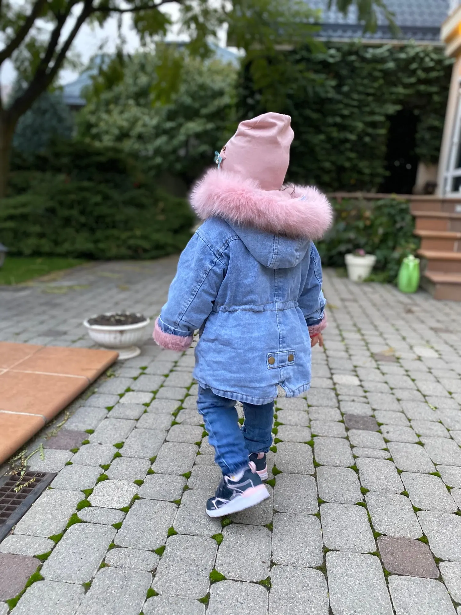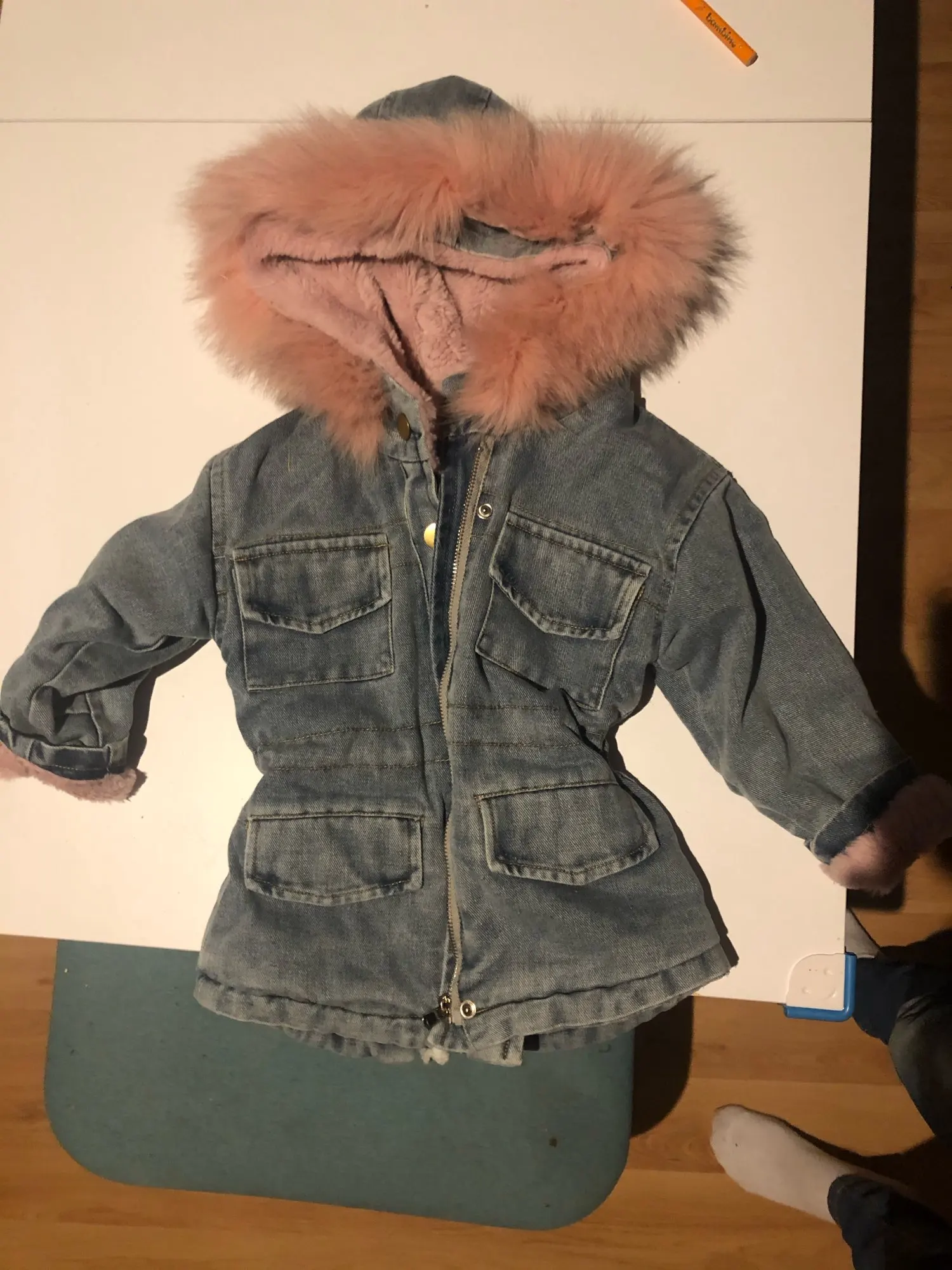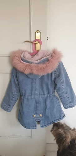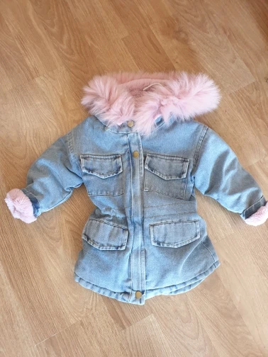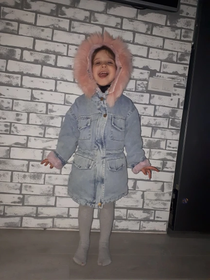 Красивая куртка, мех меньше, чем на фото продавца, но стоит того. Настоятельно Рекомендуемая дочка имеет размер 86, у нее будет большой размер (бралама 90 см), но талия может растягиваться и затягиваться, рукава wywin234 :) Доставка в Польшу 3 wks :)