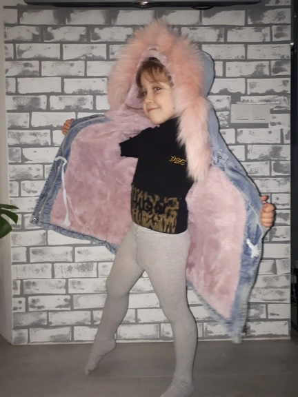 Отличная парка. Ждали три недели. Номер отслеживался. Взяли 4т чтобы с запасом была, дочке 2,5 года (98 рост) курточка села как и хотели. Подкатили немного рукава, но это смотрится как на фото продавца. Есть на талии затяжки, таким образом можно подогнать по фигуре. Дочке явно тепло, мех в подкладе (внутри) хоть и не натуральный, но достаточно плотный. Думаю с флисовой поддёвкой отлично и до минус 10 будет.