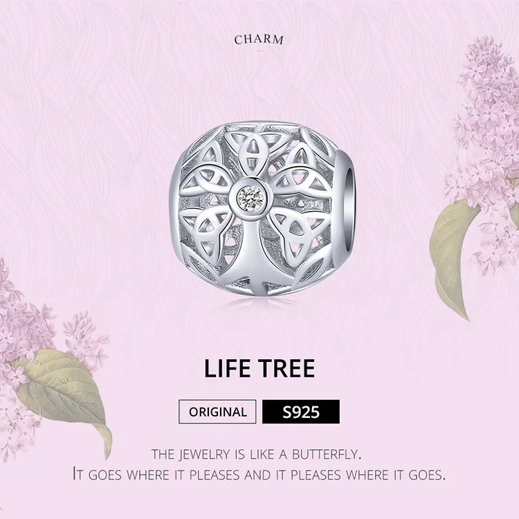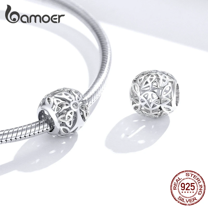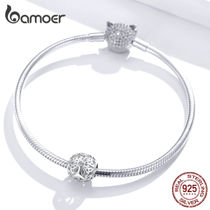 Bamoer 925 пробы Серебряный древо жизни круглый шарик металлический Шарм для женщин оригинальный серебряный браслет для изготовления ювелирных изделий BSC139