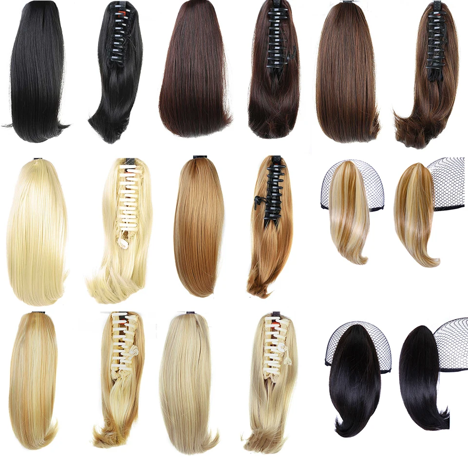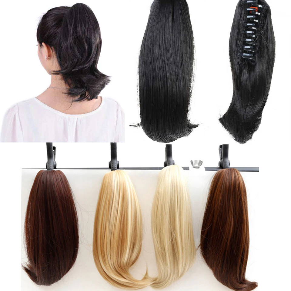 MSTN синтетические короткие прямые искусственные волосы конский хвост Омбре на заколках для наращивания волос
