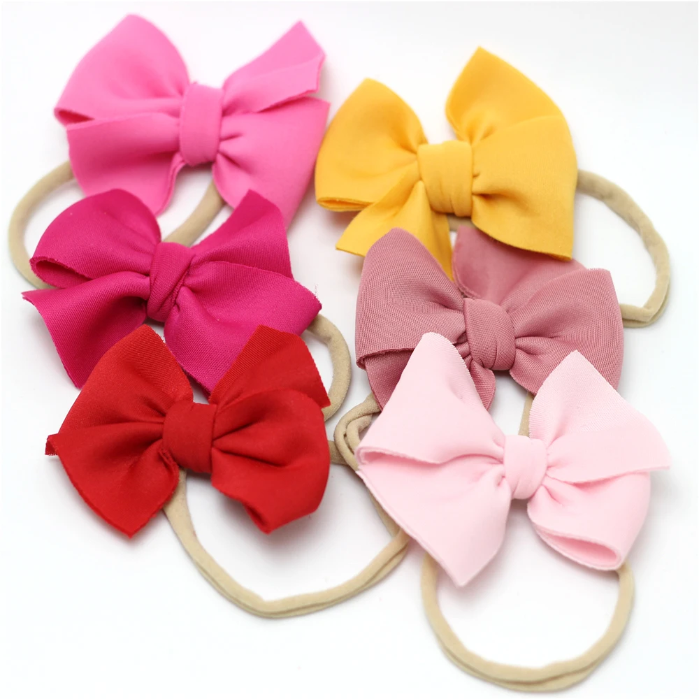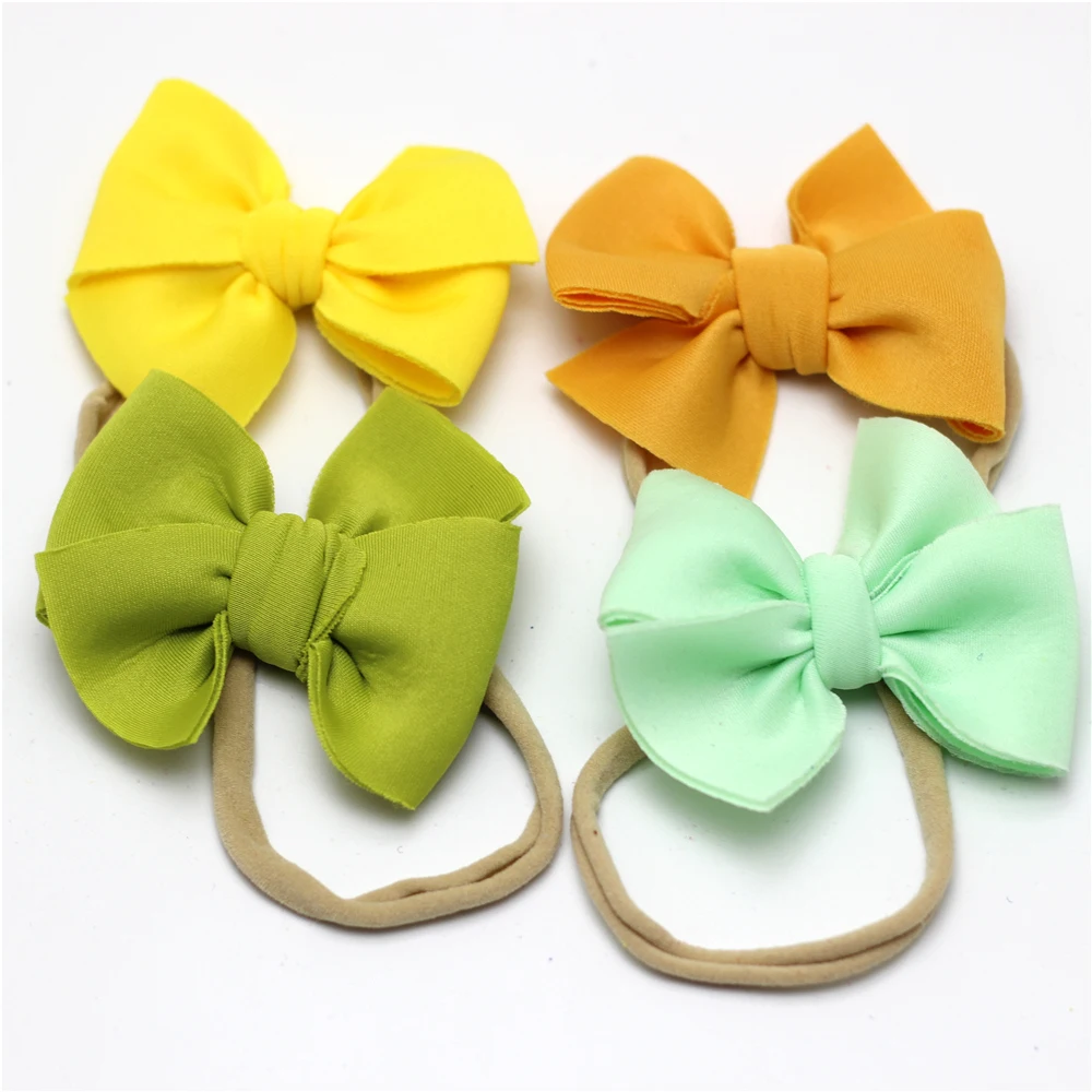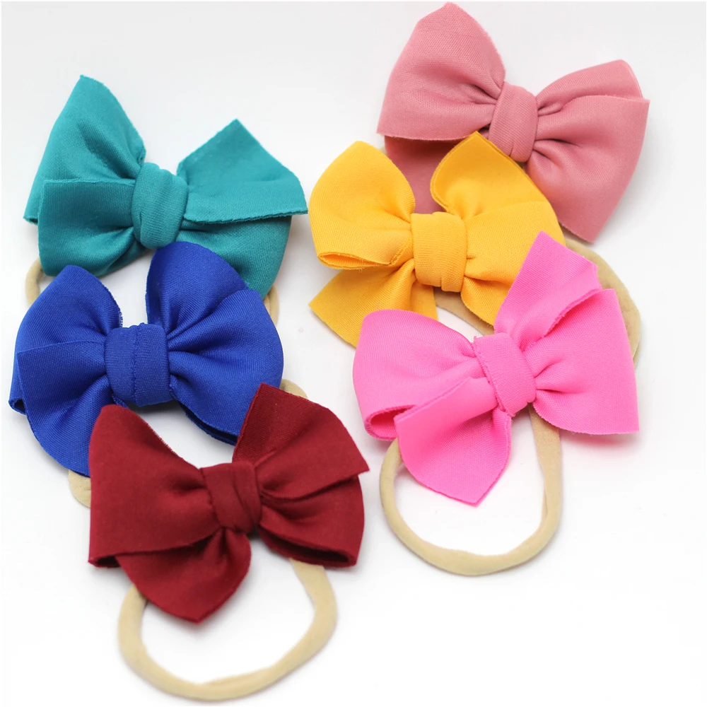 Повязка на голову с бантом для девочек, нейлоновая бандана, обруч с нейлоновым покрытием, для девочек