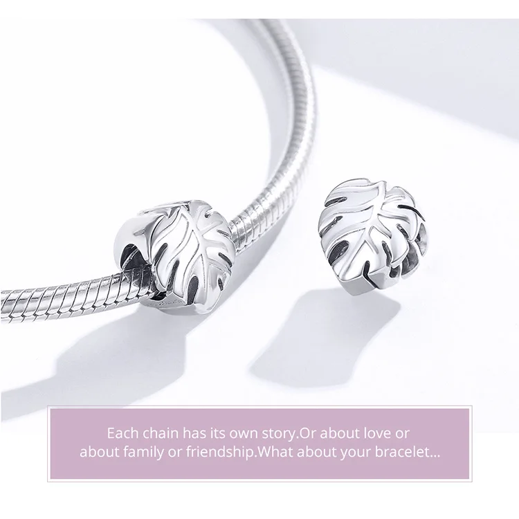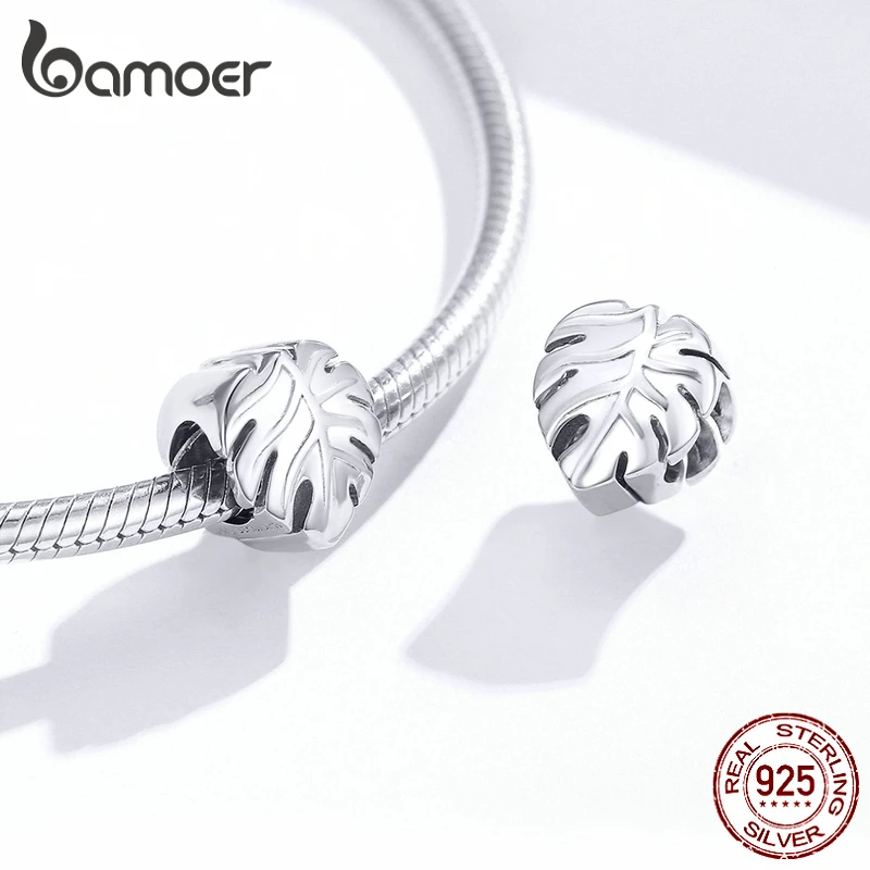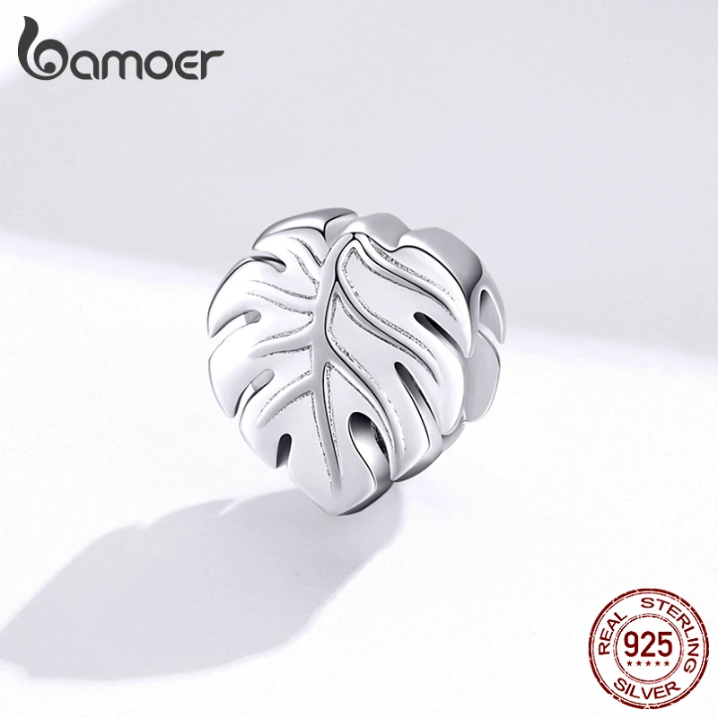 Bamoer 925 пробы серебряный металлический Шарм для оригинального фирменного браслета и браслета с растительным листком Monstera Deliciosa популярное ювелирное изделие BSC141