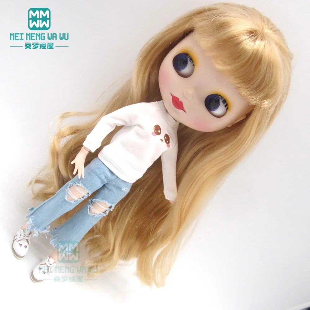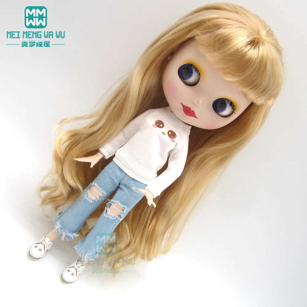 Одежда для куклы Blyth, 1 шт., модные джинсы с дырками, футболка, п...