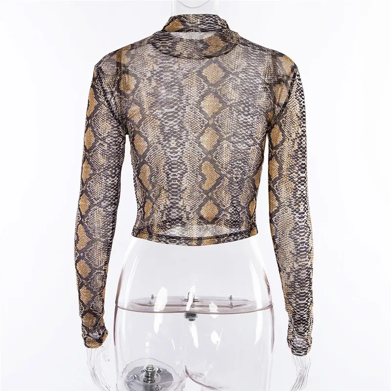 Женская футболка со змеиным принтом, Повседневная Зеленая Сетчатая футболка с длинным рукавом, Прозрачная женская футболка из змеиной кожи, укороченный топ с высоким воротом icon star icon star icon star icon star icon star