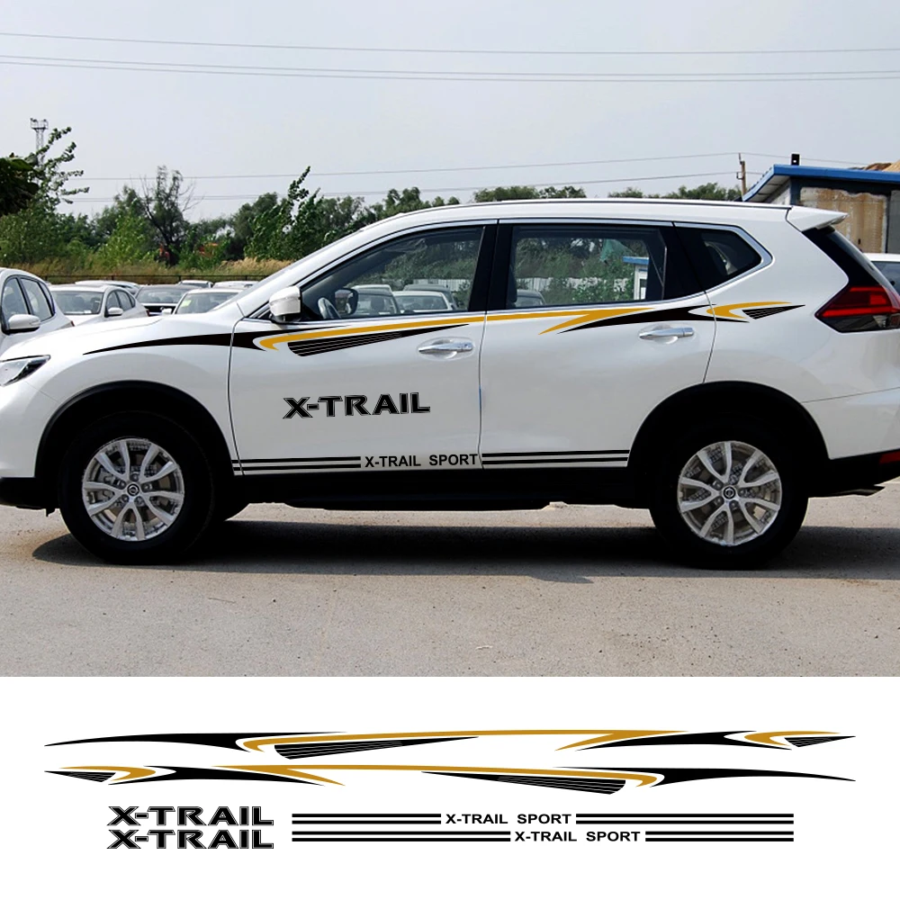 Автомобильные наклейки для Nissan X-Trail, водонепроницаемые виниловые спортивные длинные боковые наклейки для Nissan X-Trail, декоративные тюнинговые аксессуары для автомобиля, 2 шт.