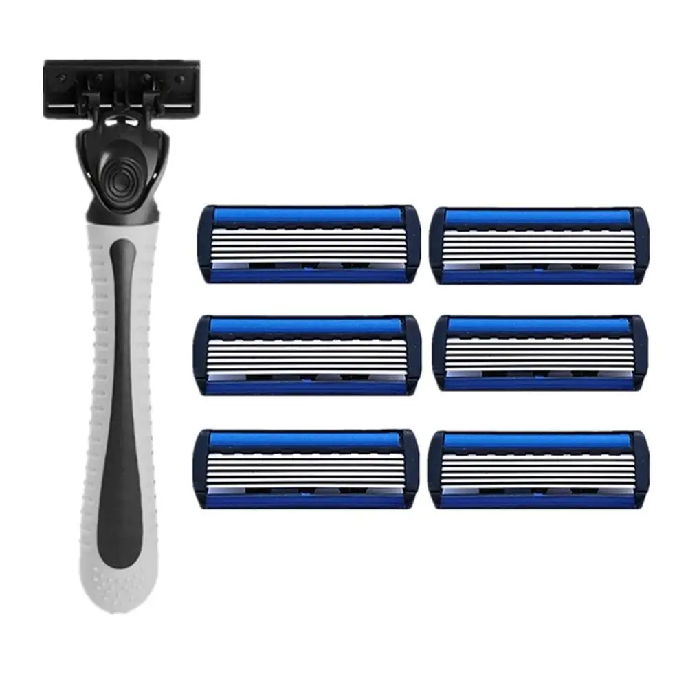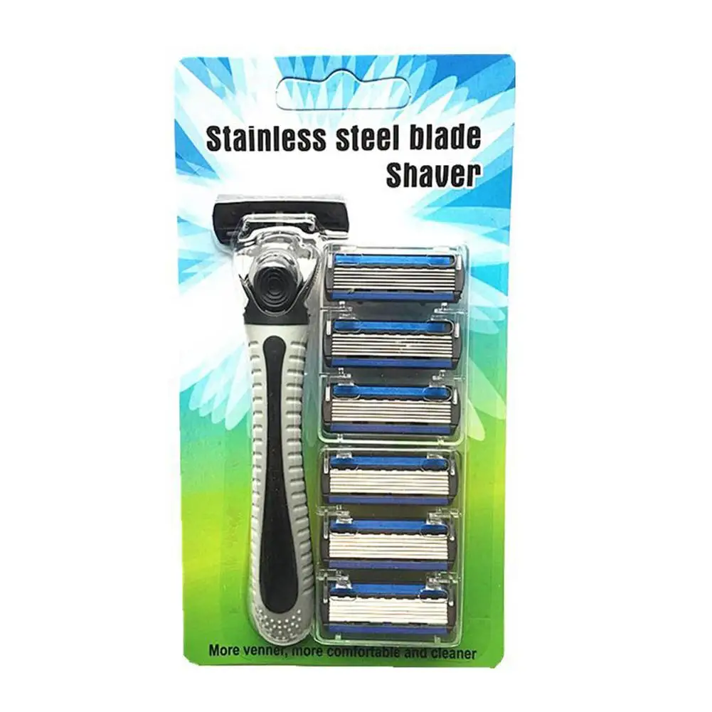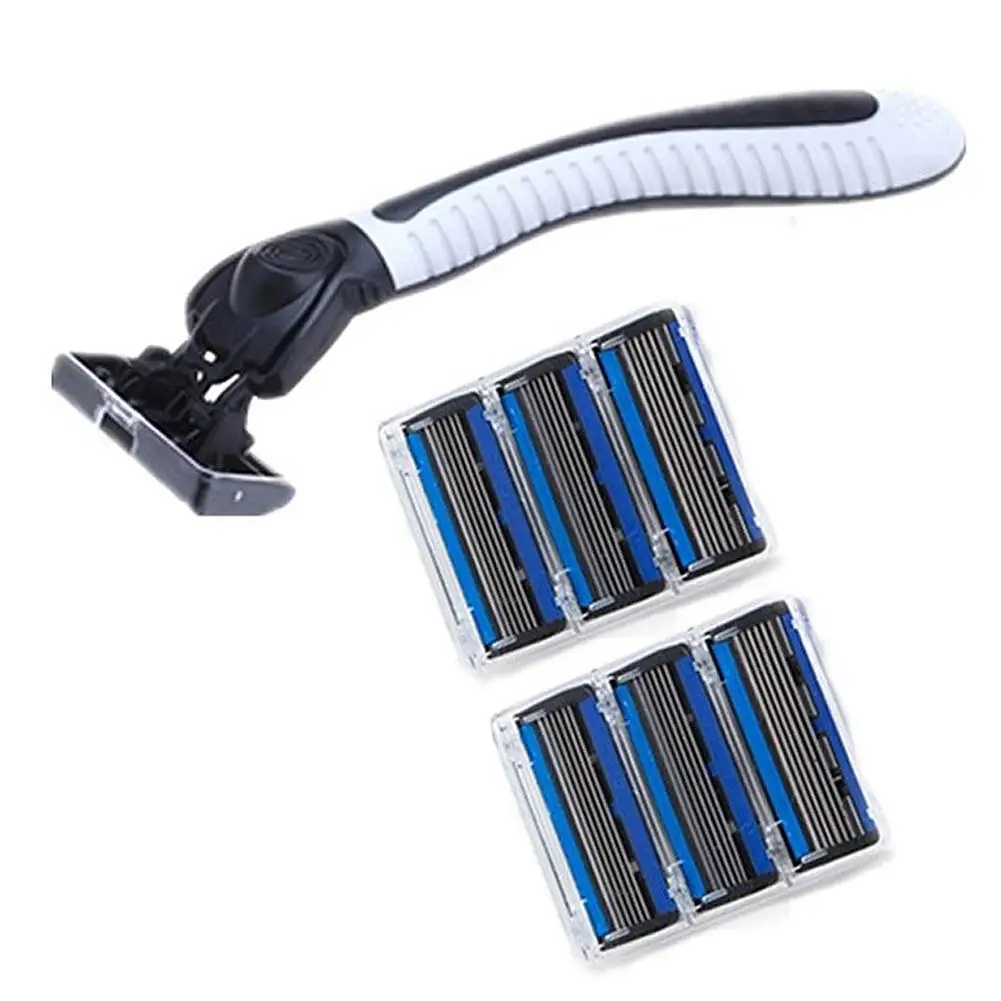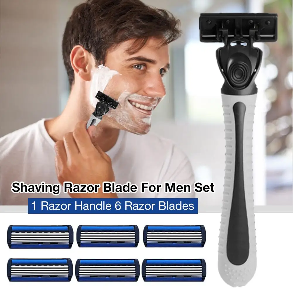 6 слоев бритвы 1 держатель для бритвы + 6 лезвий сменная бритвенная головка кассеты для бритья бритвенный набор ручная Безопасная бритва для мужчин