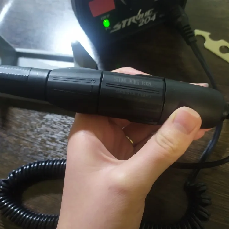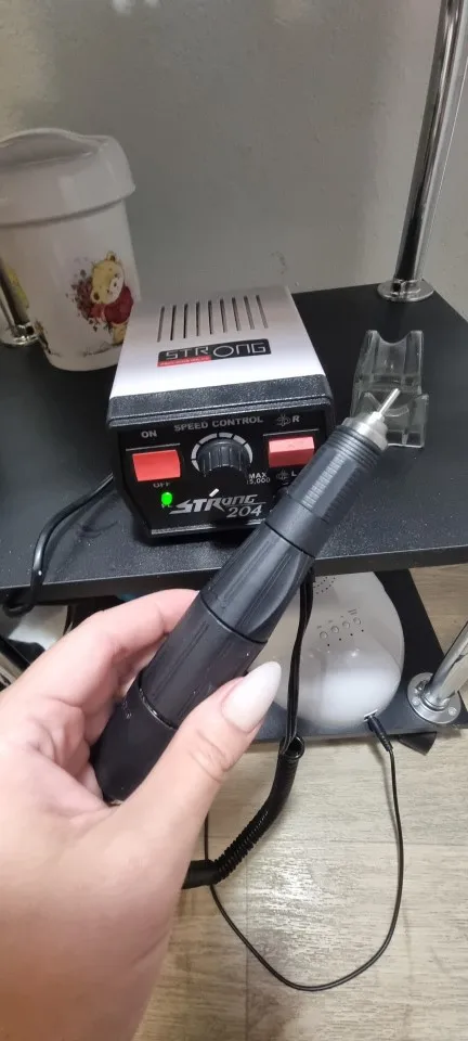 Доставка курьером на дом за 5 дней,купила за 3780,вместо моего перегоревшего аппарата тоже с али"розовенький такой"(его хватило приблизительно на 25 маник и 10 педикюров)надеюсь этот прослужит дольше.В общем понравился,ручка для меня тяжёлая,особенно это чувствуется когда делаешь себе левой рукой на правой(я правша),пока делала рука настолько устала,что я неоднократно пропилила себе кутикулу до крови!,будьте аккуратны!, ручка от моего розового фрезера подошла и на этот аппарат, педалью не пользуюсь,её проверила рабочая, все фрезы что у меня есть все подошли без проблем, блок греется в пределах нормы, запаха пластика при работе нет, если на предыдущем аппарате я снимала акрилатик/гель почти на полной мощности,то на этом не больше чем на 40% от всей мощности,маник вообще вкл на 10-15%, из этого делаю вывод что заявленная мощность соответствует действительности,т.к.я делаю только себе мне более чем хватает, как он себя поведёт в полевых условиях сказать не могу.