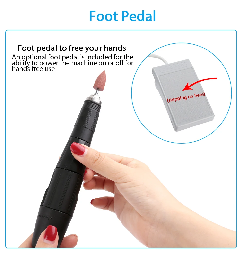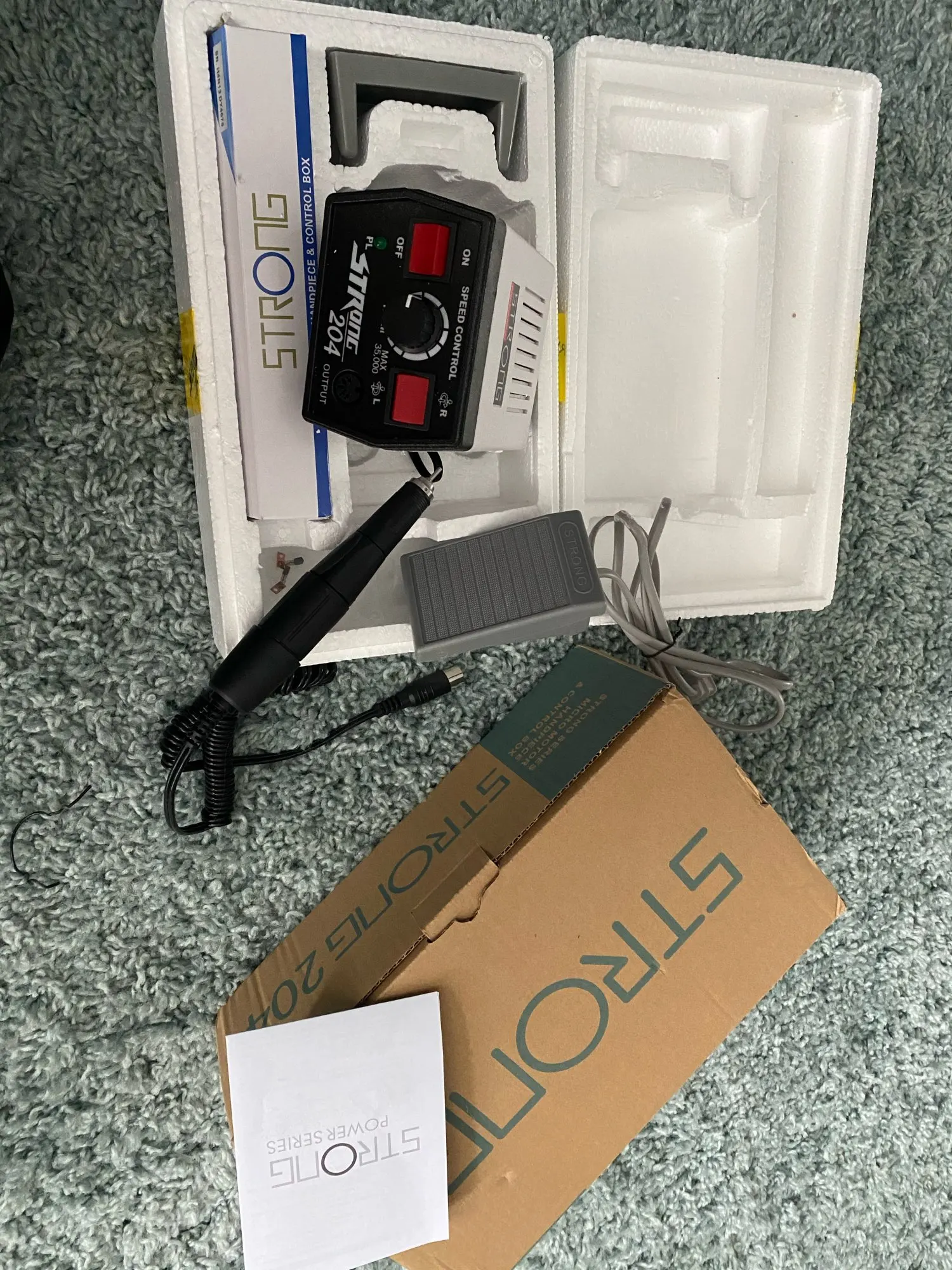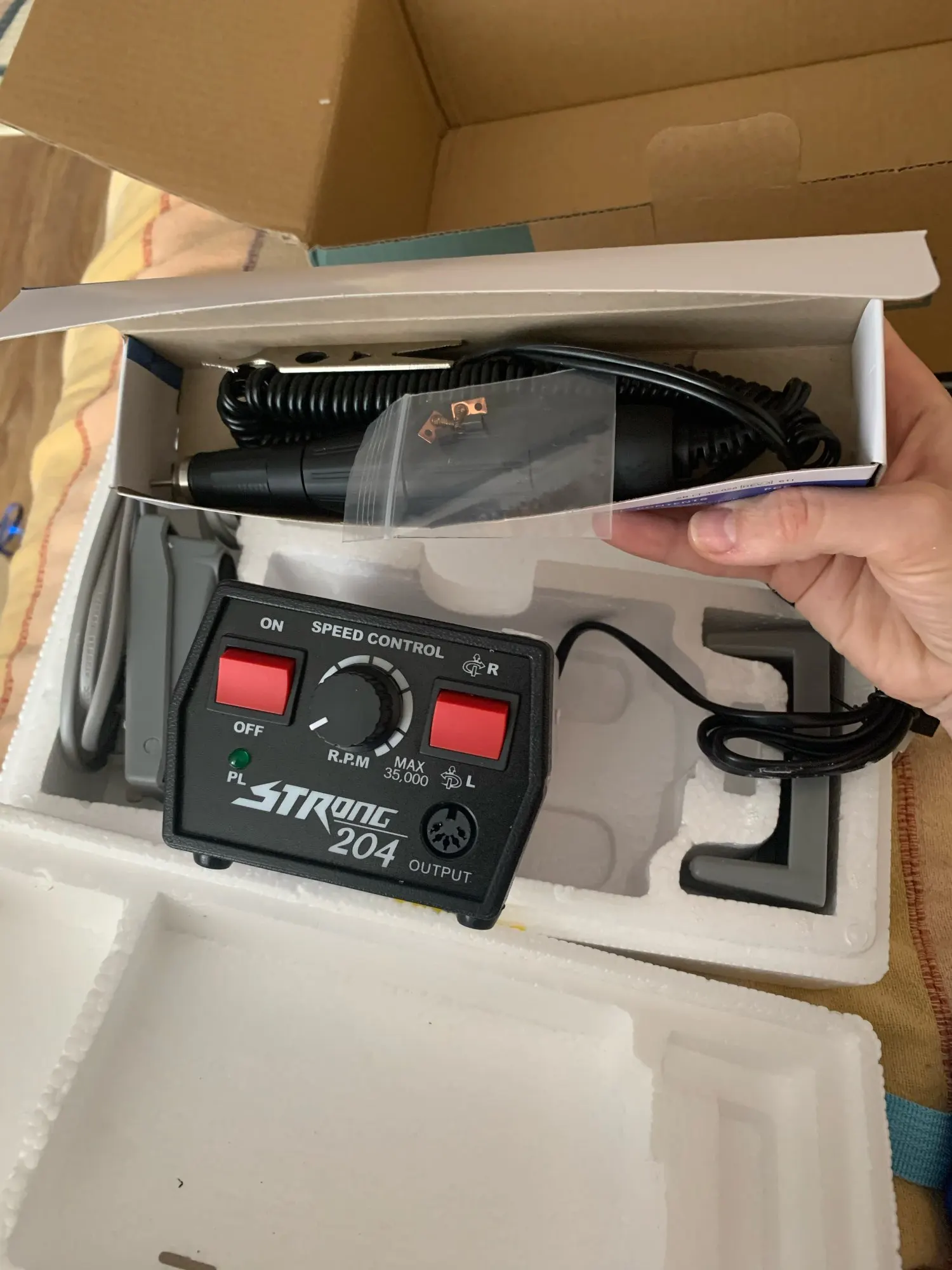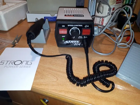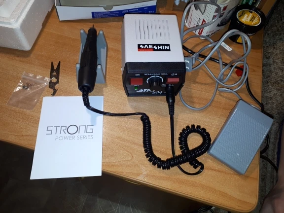 Спасибо Алиэкспрес и людям которые качественно и хорошо выполняют свою работу. Внешне товар выглядит качественно все пластиковые детали хорошие без острых углов и оливок. Работает все плавно регулировка скорости от 0 и до максимума хоть через кнопку включения хоть через ножную педаль бор фрезу зажимает хорошо диаметр фрез как раньше для зуботехников. Я доволен. Заходите к продавцу.!