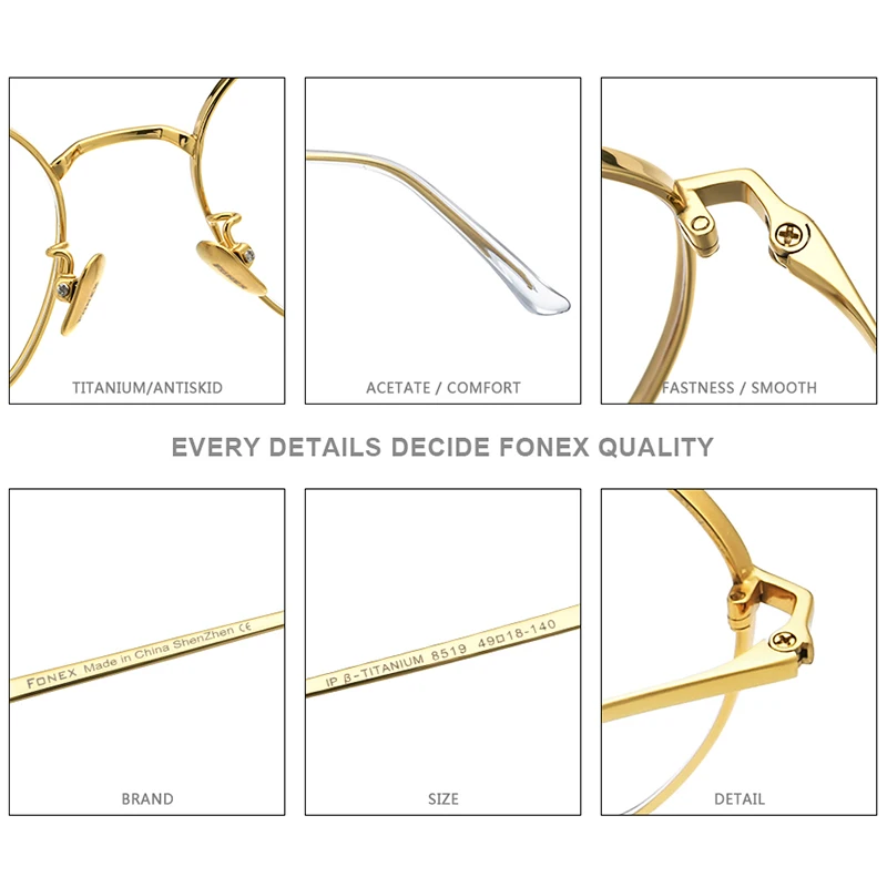 FONEX Очки мужские и женские из чистого титана в ретро-стиле, F85675