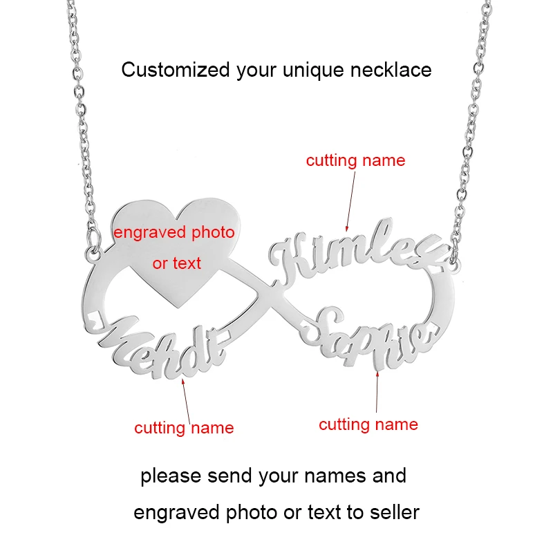 Бесконечность цепочки и с принтом в виде сердец и гравированные пользовательские табличка neckalces для мать и дочка ювелирные изделия для лучших друзей подарки