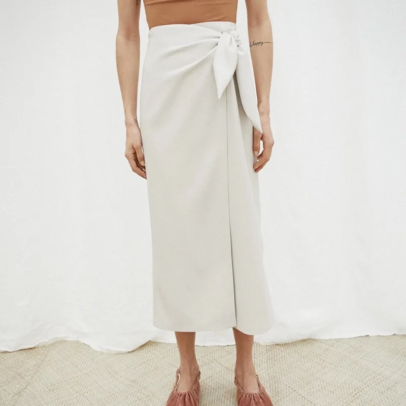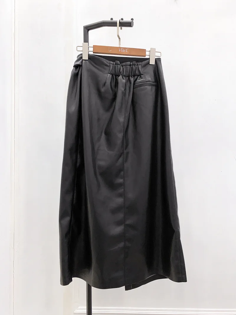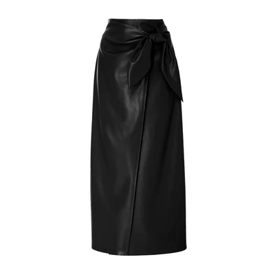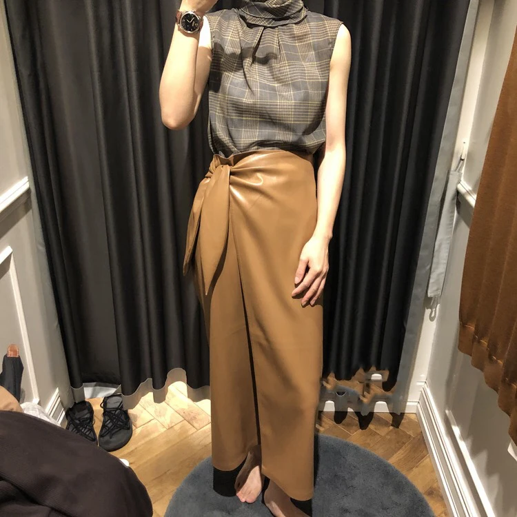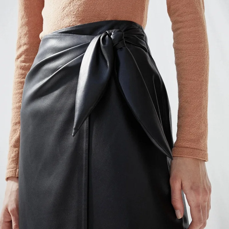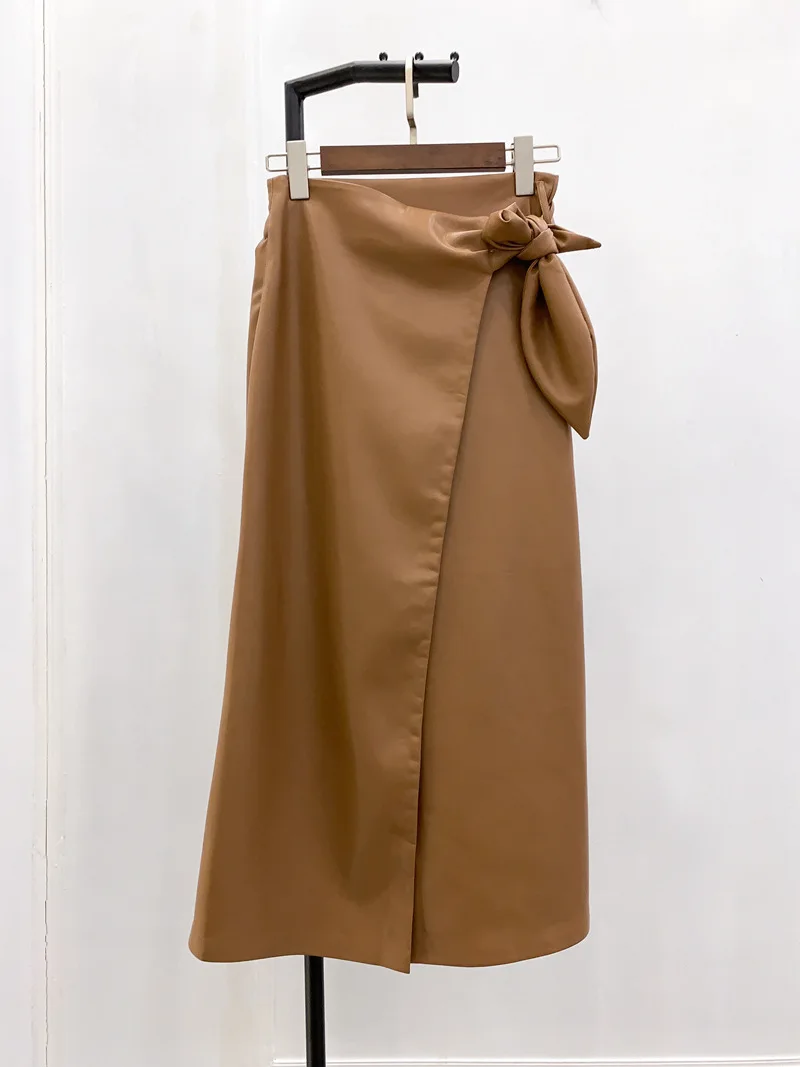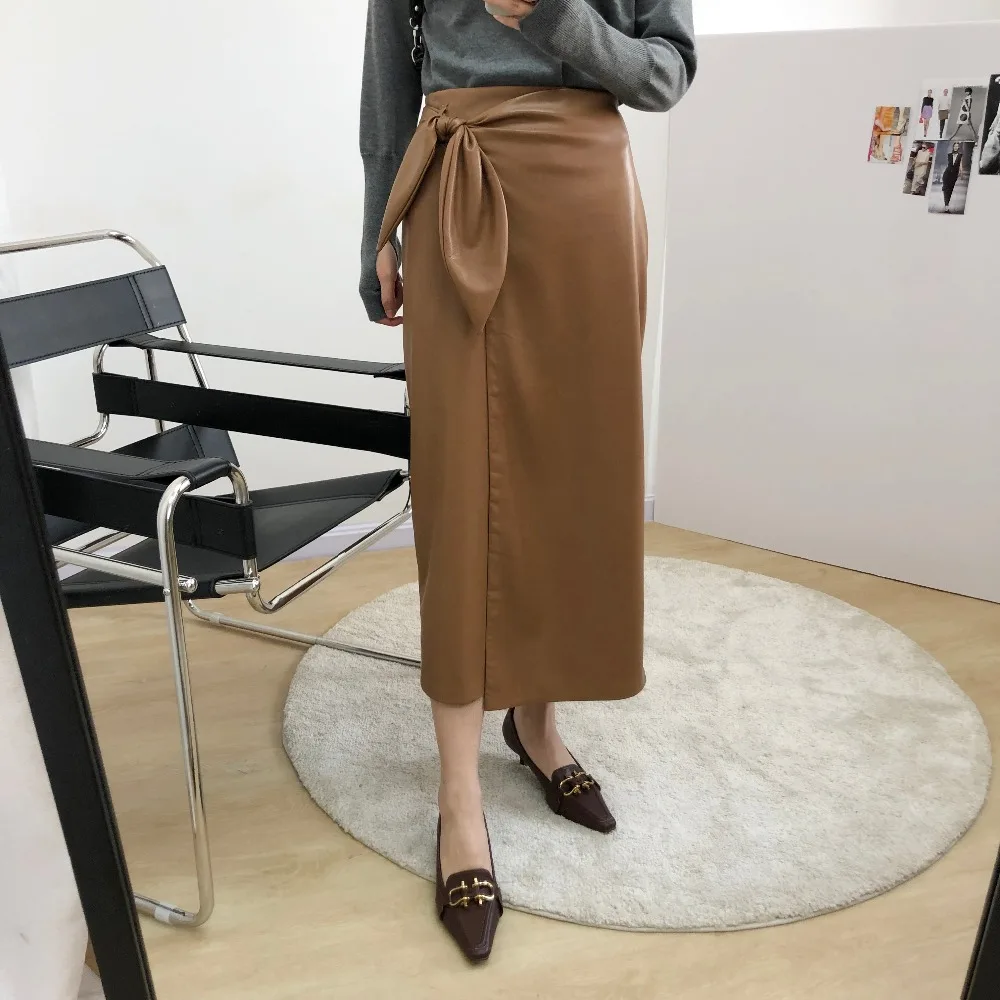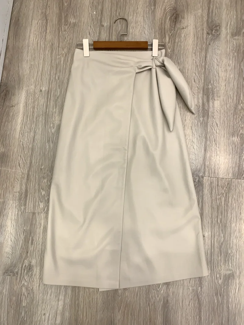 Женская кожаная длинная юбка с запахом, цельная Однотонная юбка миди с завязкой в виде кроличьего уха, Офисная Женская одежда