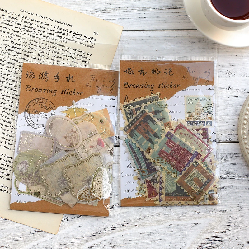 Декоративные почтовые марки наклейки для скрапбукинга junklog 40 X, золотистые наклейки