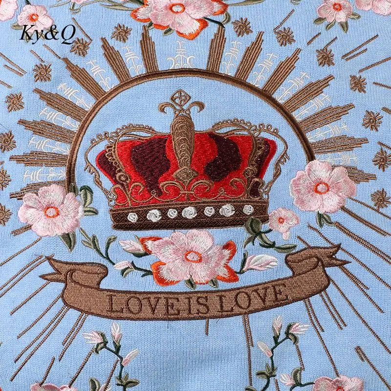Женский трикотажный свитер с вышивкой в виде короны, подиумный диза...