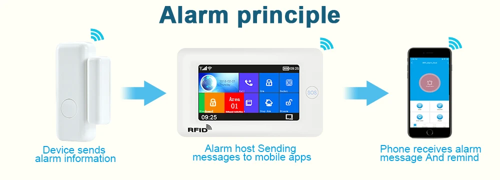 При возникновении непредвиденного проникновения датчик отправит сигнал хосту, хост немедленно вызовет или отправит SMS, чтобы сообщить об этом собственнику.