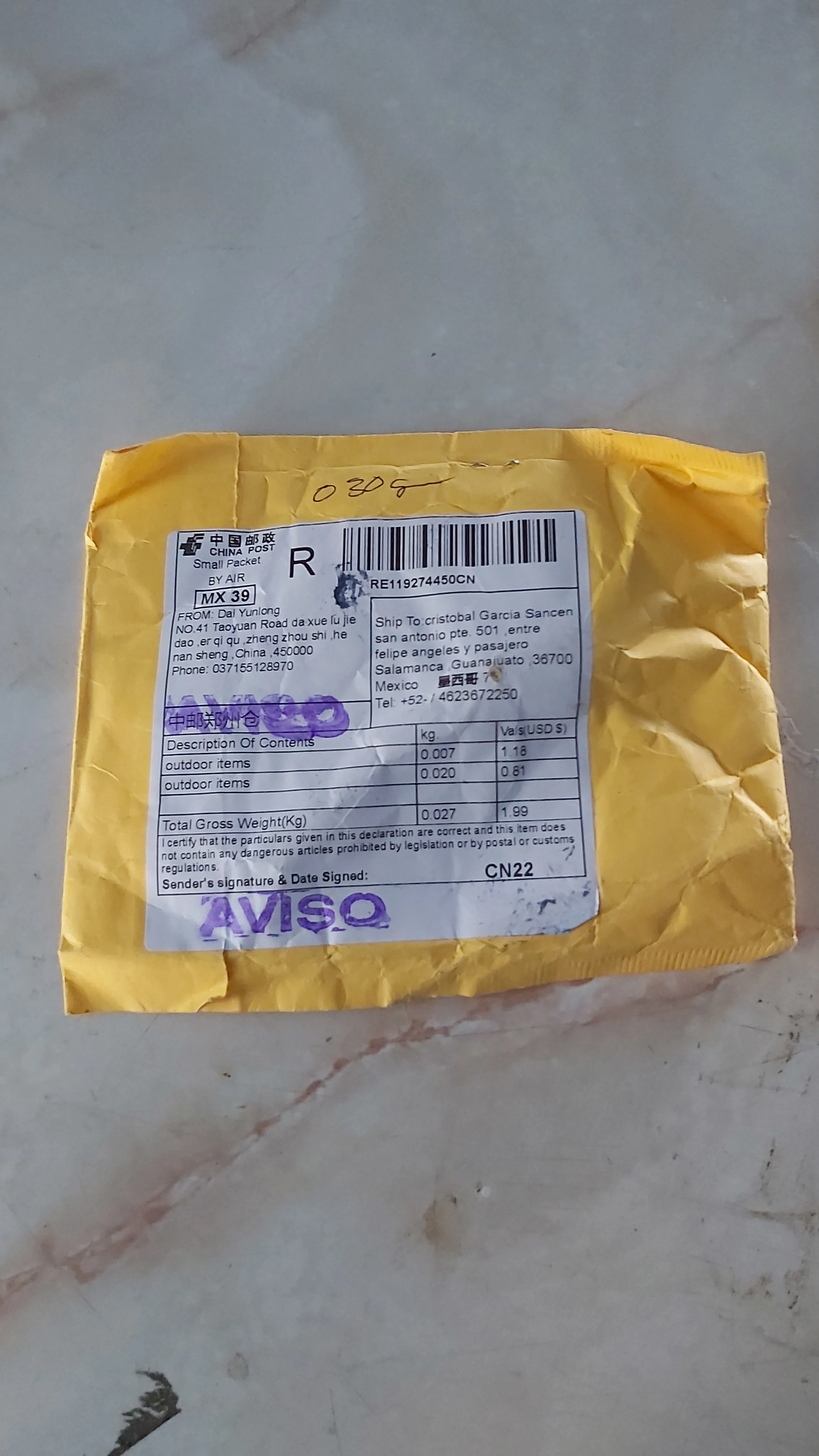 Страна: CO Color: Green Доставка: China Post Air Parcel 19.12.2020
