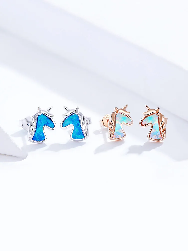 Женские серьги-гвоздики bamoer, 2 цвета, опал, ликорн, серебро 925 пробы, модные ювелирные изделия, Прямая поставка SCE815