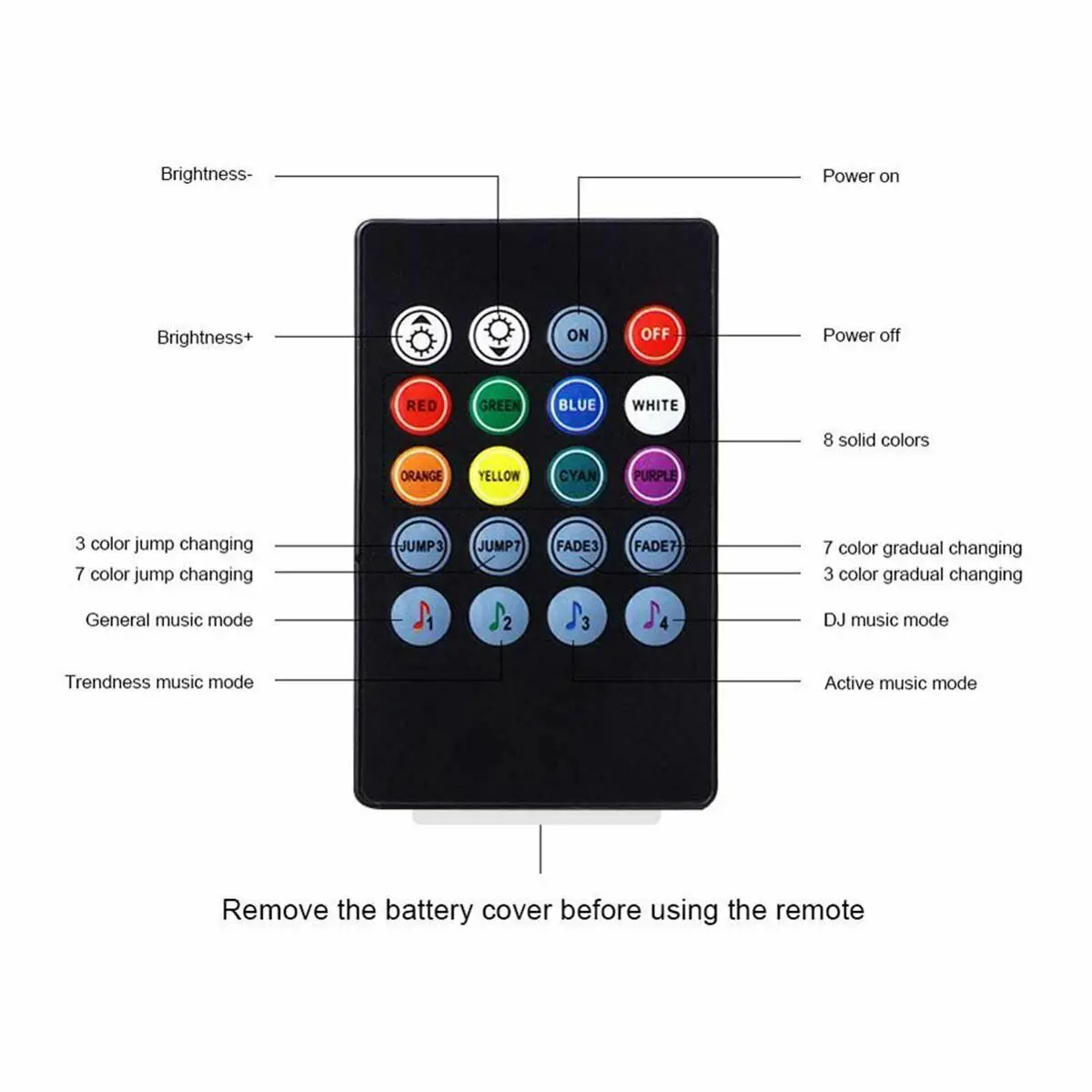 Музыкальный звукКонтроллер:1. 20 клавишный инфракрасный музыкальный светодиодный контроллер, который принимает усовершенствованный микро-блок управления.2. Он используется для управления Различные светодиодный ламп. Например, Точечный светильник, гибкий ленточный светильник, настенный светильник, стекло Настенный светильник для штор и так далее.3. Простота в использовании: вам просто нужно Подключите линии нагрузки и линии электропередачи, убедитесь, что все соединения Исправьте перед включением питания.4. Яркость, статические цвета и эффекты изменения цвета можно регулировать с помощью инфракрасного пульта дистанционного управления.5. Изменения с музыкой: когда он находится в режиме звукового управления, цвета изменятся с музыкальным ритмом.6. Широкое применение. Идеально подходит для ktvs, баров, домашних видео комнат, а также рекламных работ.