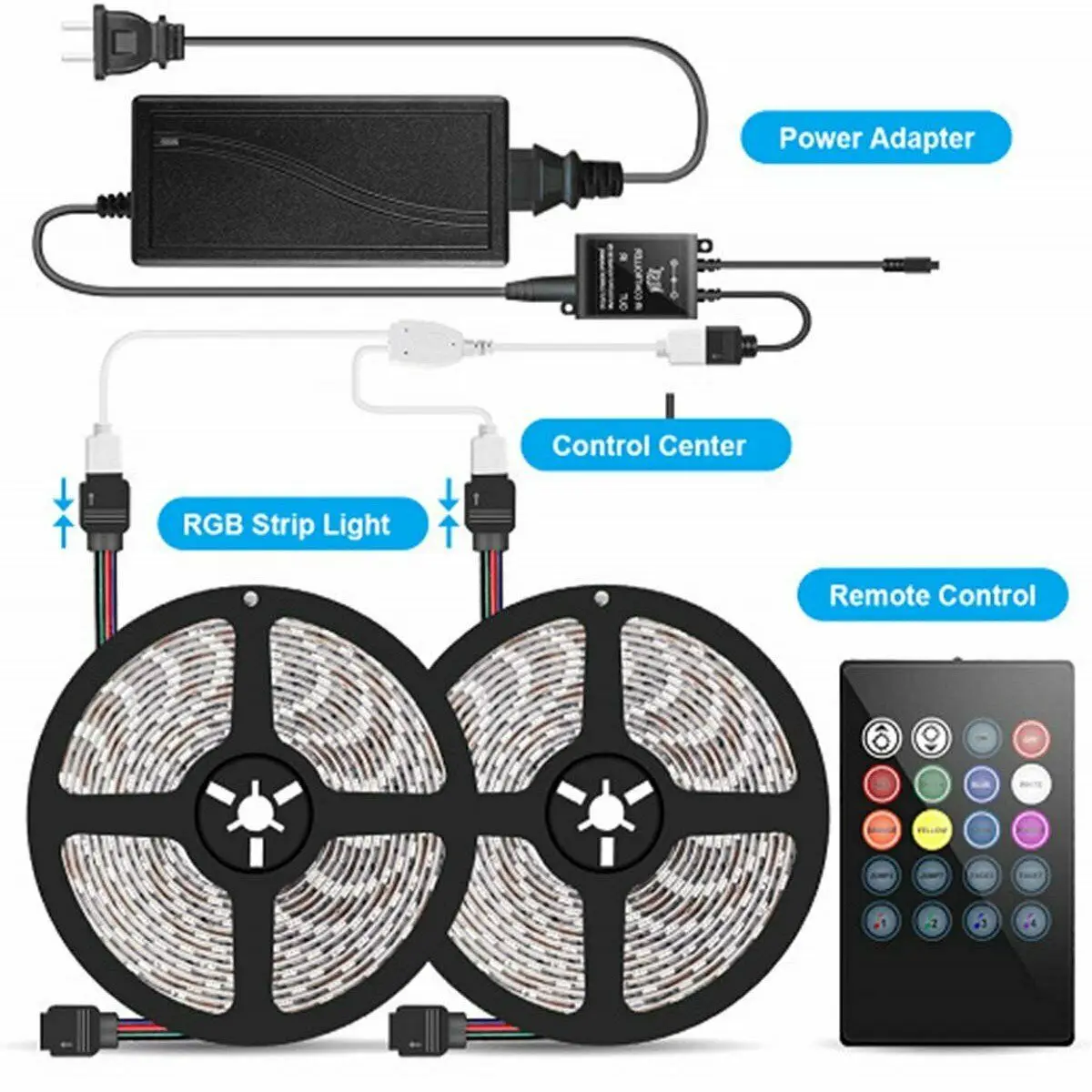 Светодиодная лента + пульт дистанционного управления + вилка = 2x5 м Светодиодная лента + 1 xЗвукКонтроллеры+ 1 x 5A источник питания