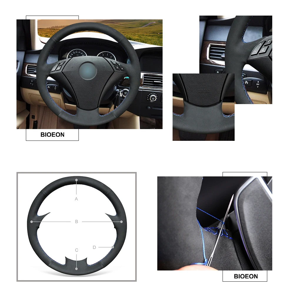Сшитая вручную Черная синтетическая замша Чехлы рулевого колеса автомобиля для BMW E60 (седан) 530d 2003-2009 E61 (универсал) 2004-2009