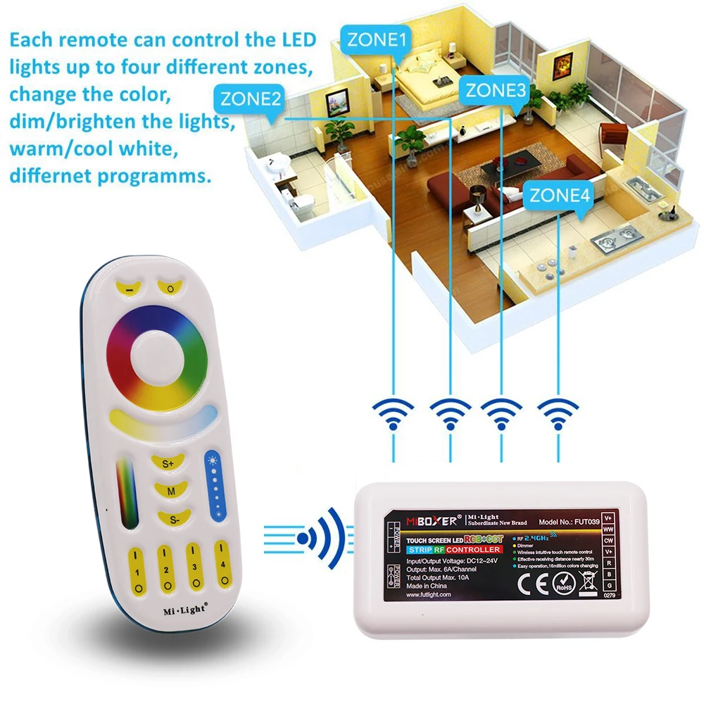 Mi светильник RGBCCT контроллера 2,4 г Беспроводной 4-Зона RF сенсорный пульт дистанционного управления WI-FI Miboxer WL-Box1 для CCT RGBRGBWRGB + CCT светодиодные полосы ленты светильник