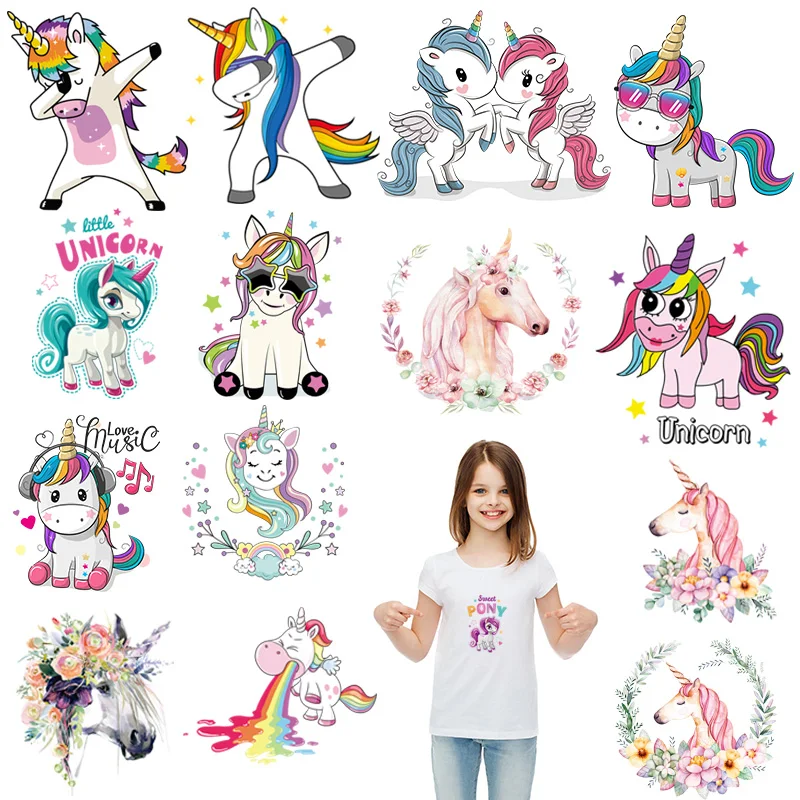 Утюжок на симпатичной нашивка единорога es Набор для детской одежды DIY Футболка аппликация теплопередача виниловая нашивка единорога термопресс