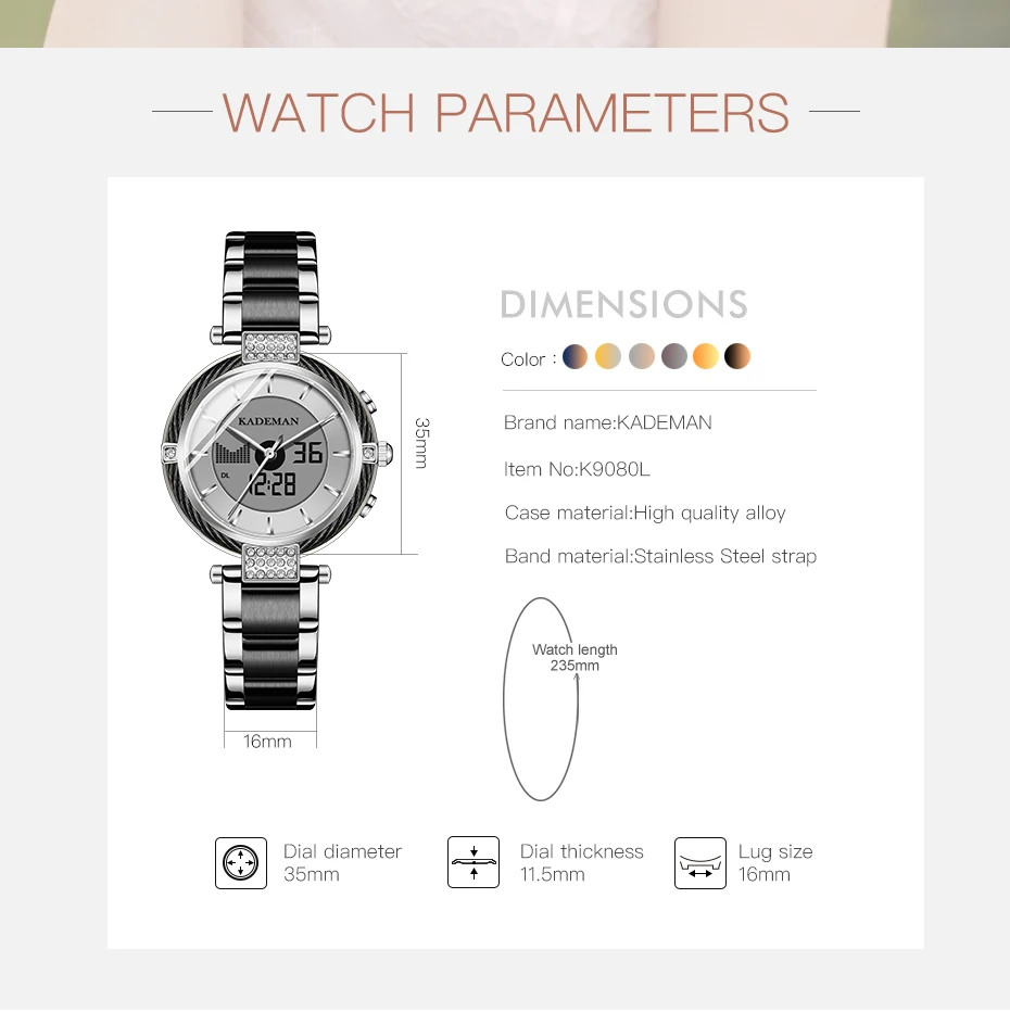 Новые женские часы K9080 Kademan с двойным жк-дисплеем, элегантные ...