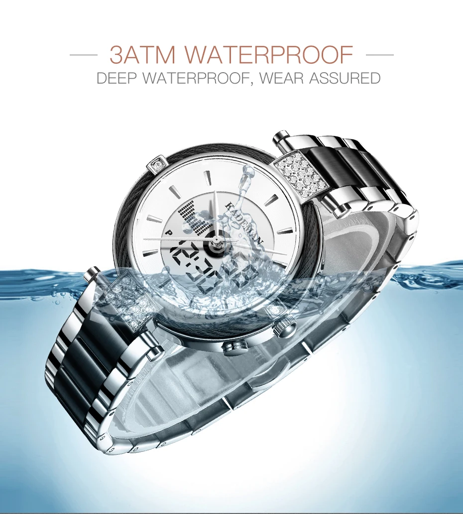 KADEMAN роскошные хрустальные часы со светодиодным дисплеем, женски...