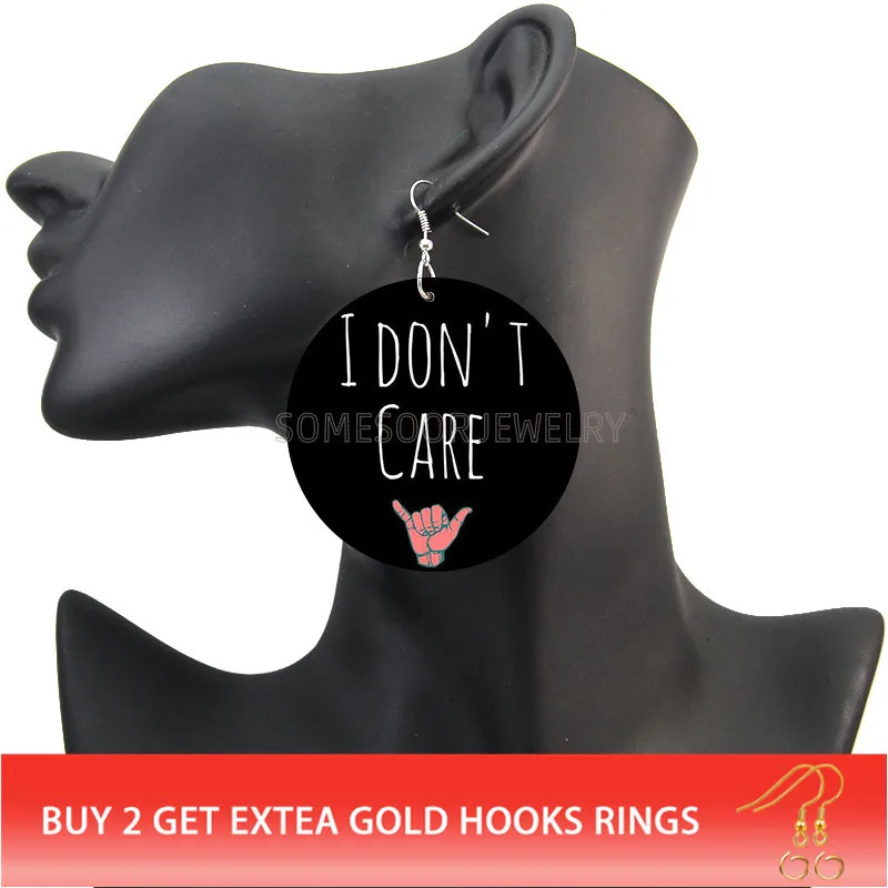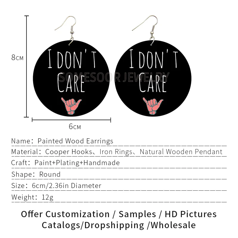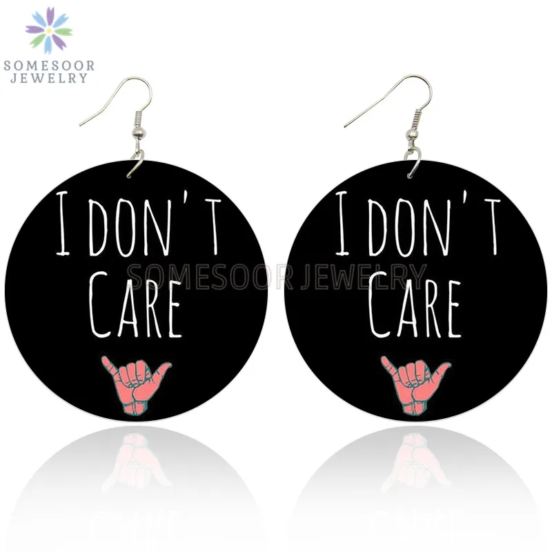 SOMESOOR двусторонние напечатанные Я не волнуюсь жест африканские деревянные висячие серьги черные высказки Дизайн уха Висячие для женщин Подарки